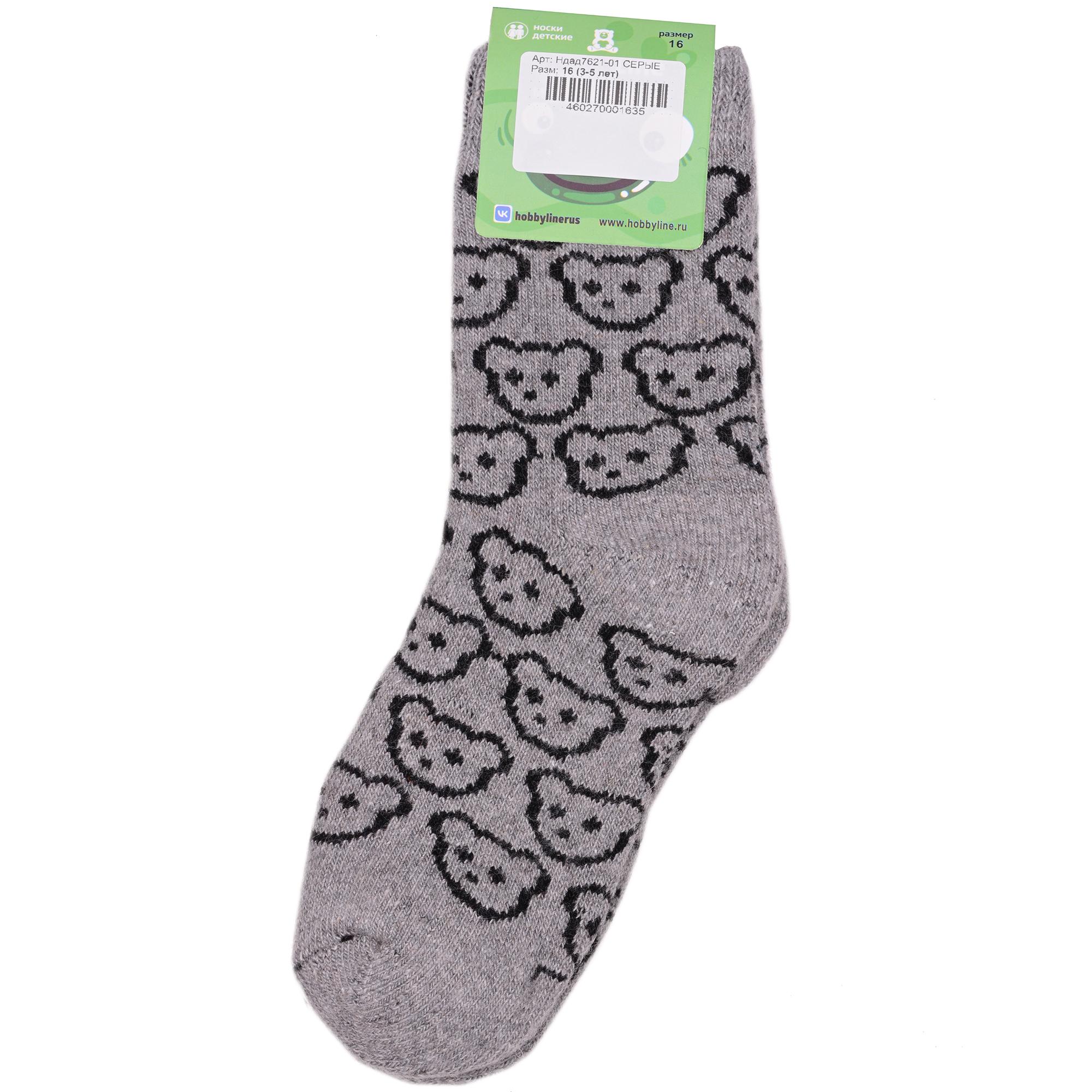 Зимние укороченные детские носки, цвет серый, теплые, с принтом, махровые, состав: 35% вискоза, 20% шерсть, 10% ангора, 30% полиэстер, 5% эластан (состав на этикетке может отличаться), арт. Ндад7621-01. Производитель «Китай, страна бренда - Россия» под брендом «Hobby line».