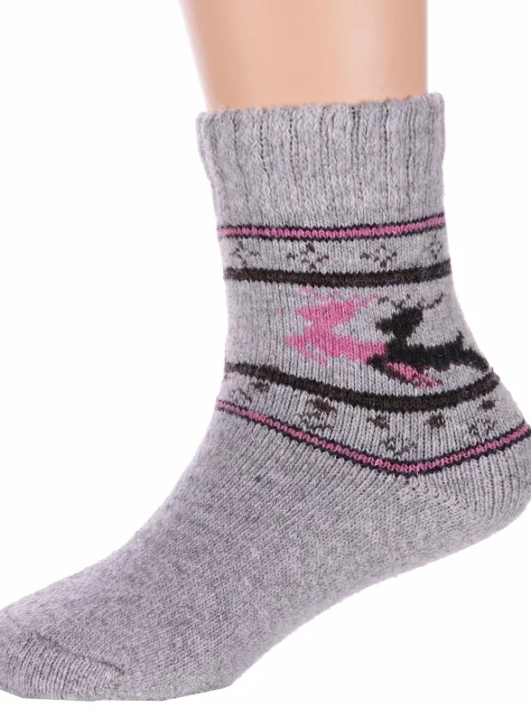 Зимние укороченные детские носки, цвет серый, теплые, повседневные, махровые, шов обычный (не бесшовные), принт (рисунок): новый год, животные, с узором, состав: 35% вискоза, 20% шерсть, 10% ангора, 30% полиэстер, 5% эластан, арт. Ндад7639-6. Производитель «Китай, страна бренда - Россия» под брендом «Hobby line».