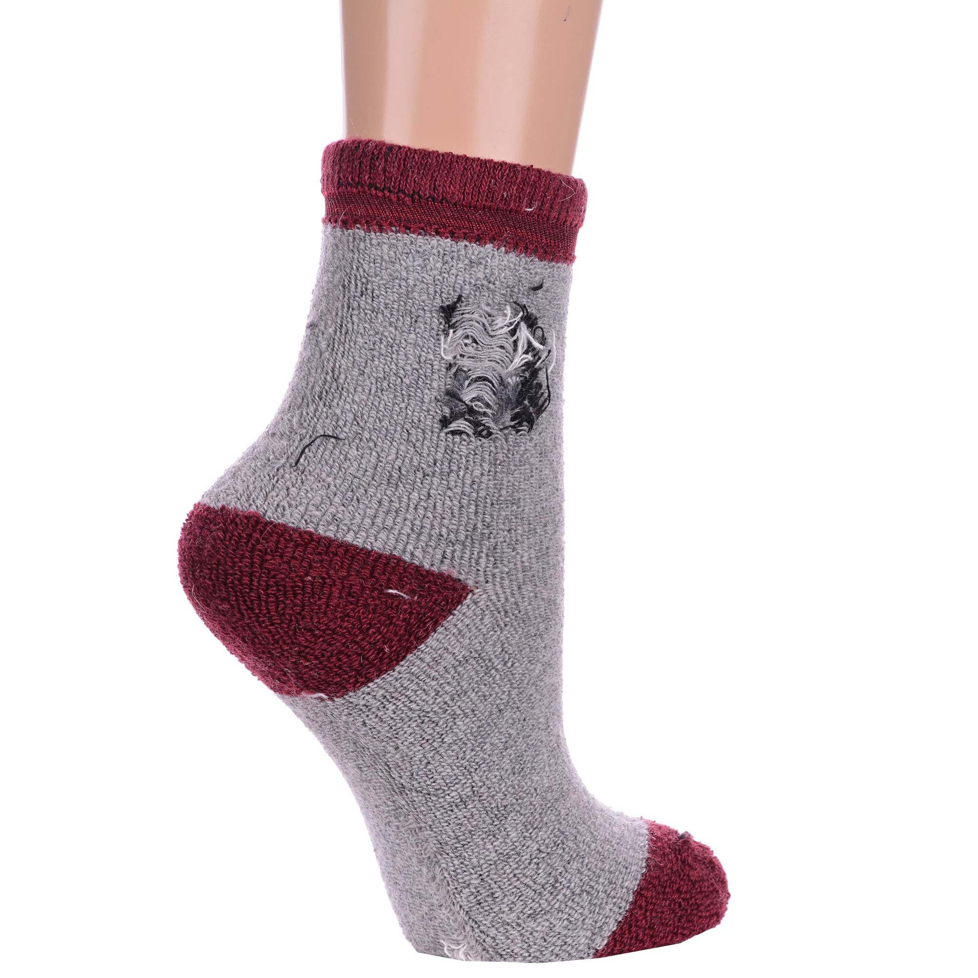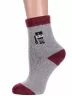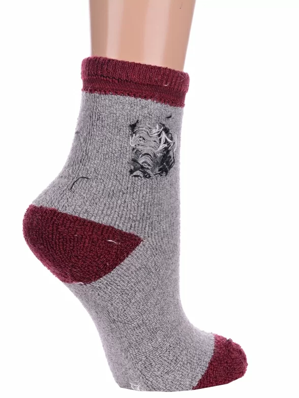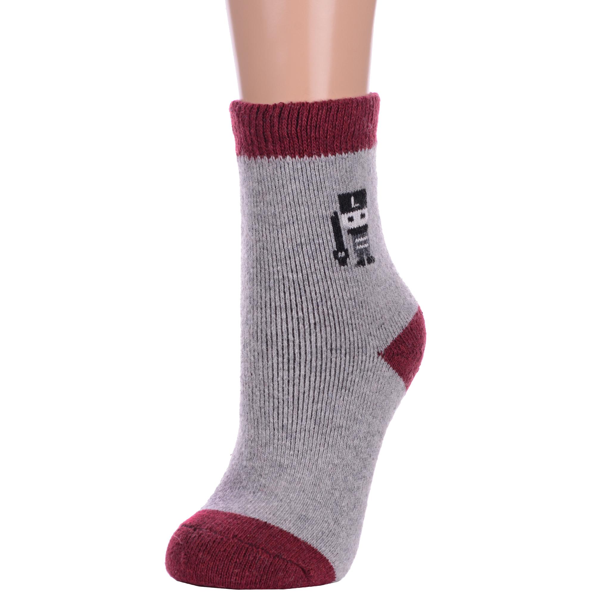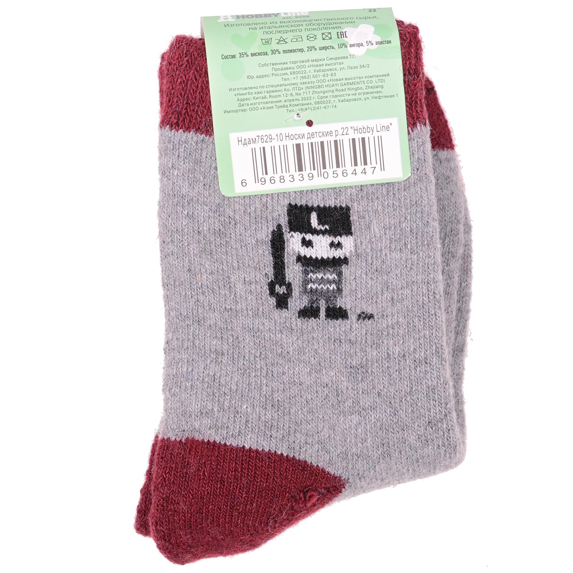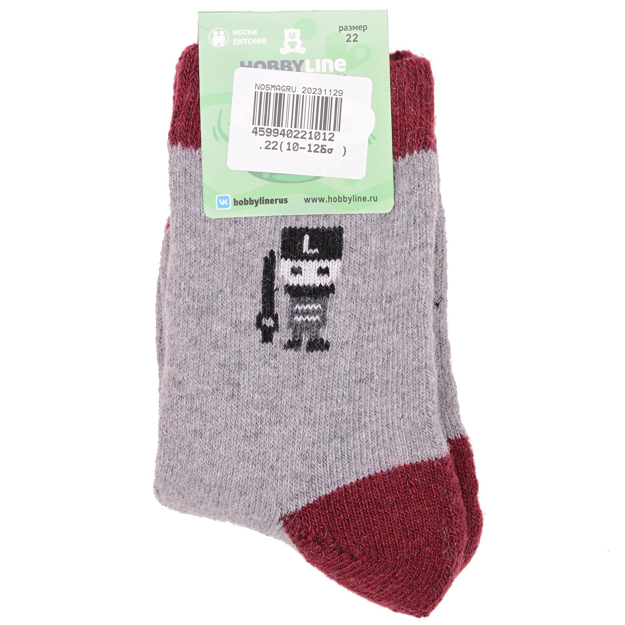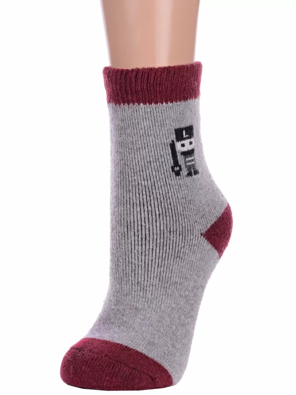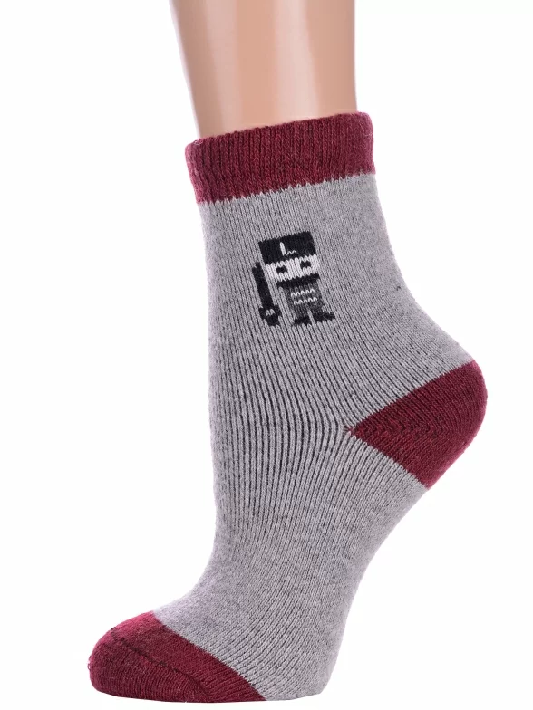 Зимние укороченные детские носки, цвет серый, теплые, повседневные, махровые, шов обычный (не бесшовные), принт (рисунок): люди, контрастные пятка / мысок / резинка, с узором, состав: 35% вискоза, 20% шерсть, 10% ангора, 30% полиэстер, 5% эластан, арт. Ндам7629-10. Производитель «Китай, страна бренда - Россия» под брендом «Hobby line».