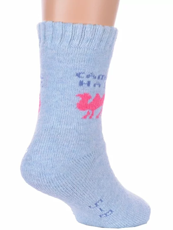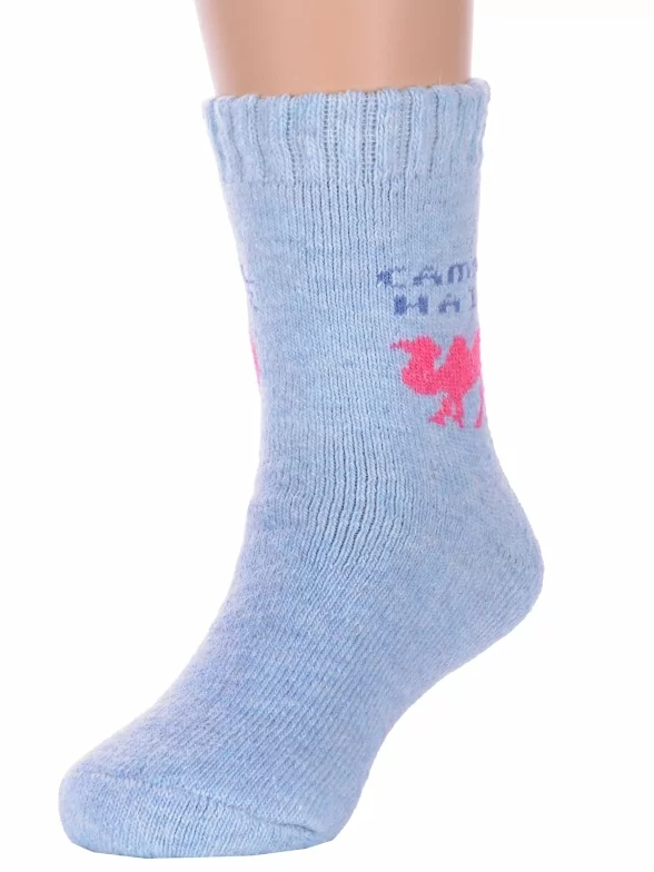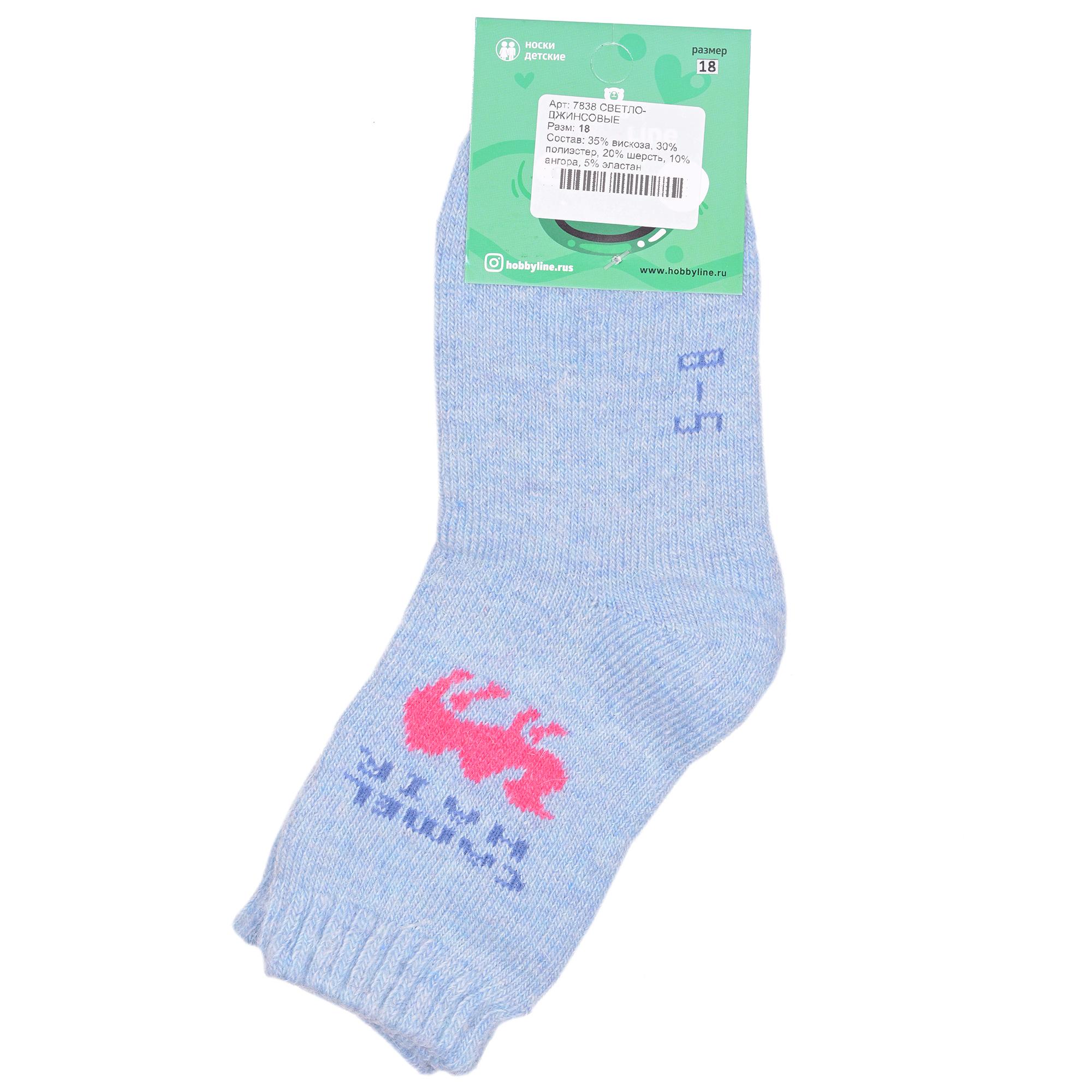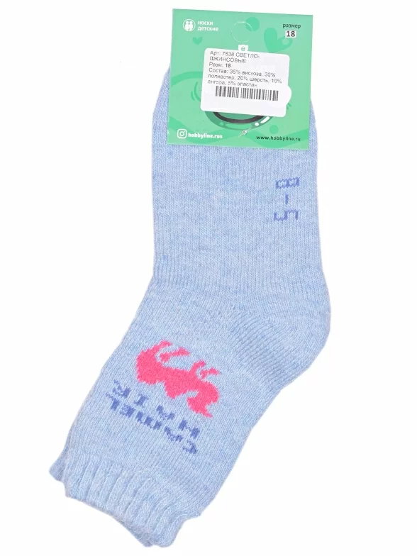 Зимние укороченные детские носки, цвет джинс, теплые, махровые, шов обычный (не бесшовные), принт (рисунок): надписи, животные, с узором, состав: 35% вискоза, 20% шерсть, 10% ангора, 30% полиэстер, 5% эластан, арт. 7838. Производитель «Китай, страна бренда - Россия» под брендом «Hobby line».