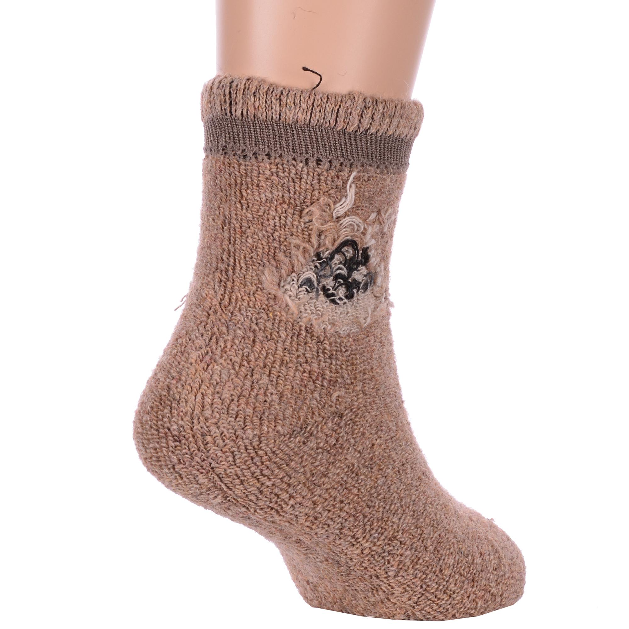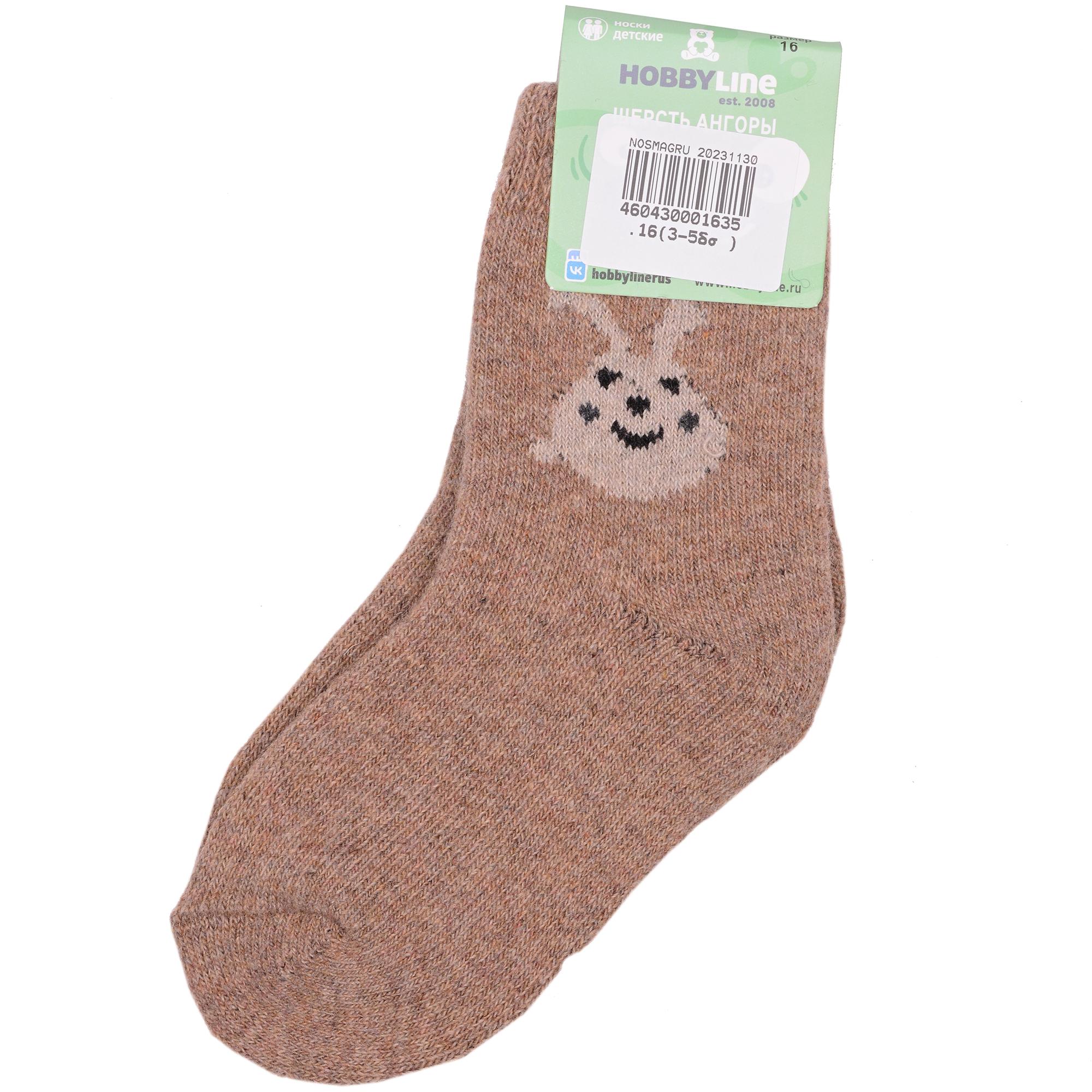 Зимние укороченные детские носки, цвет коричневый, теплые, повседневные, махровые, шов обычный (не бесшовные), принт (рисунок): животные, с узором, состав: 35% вискоза, 20% шерсть, 10% ангора, 30% полиэстер, 5% эластан, арт. Ндад7618-02. Производитель «Китай, страна бренда - Россия» под брендом «Hobby line».