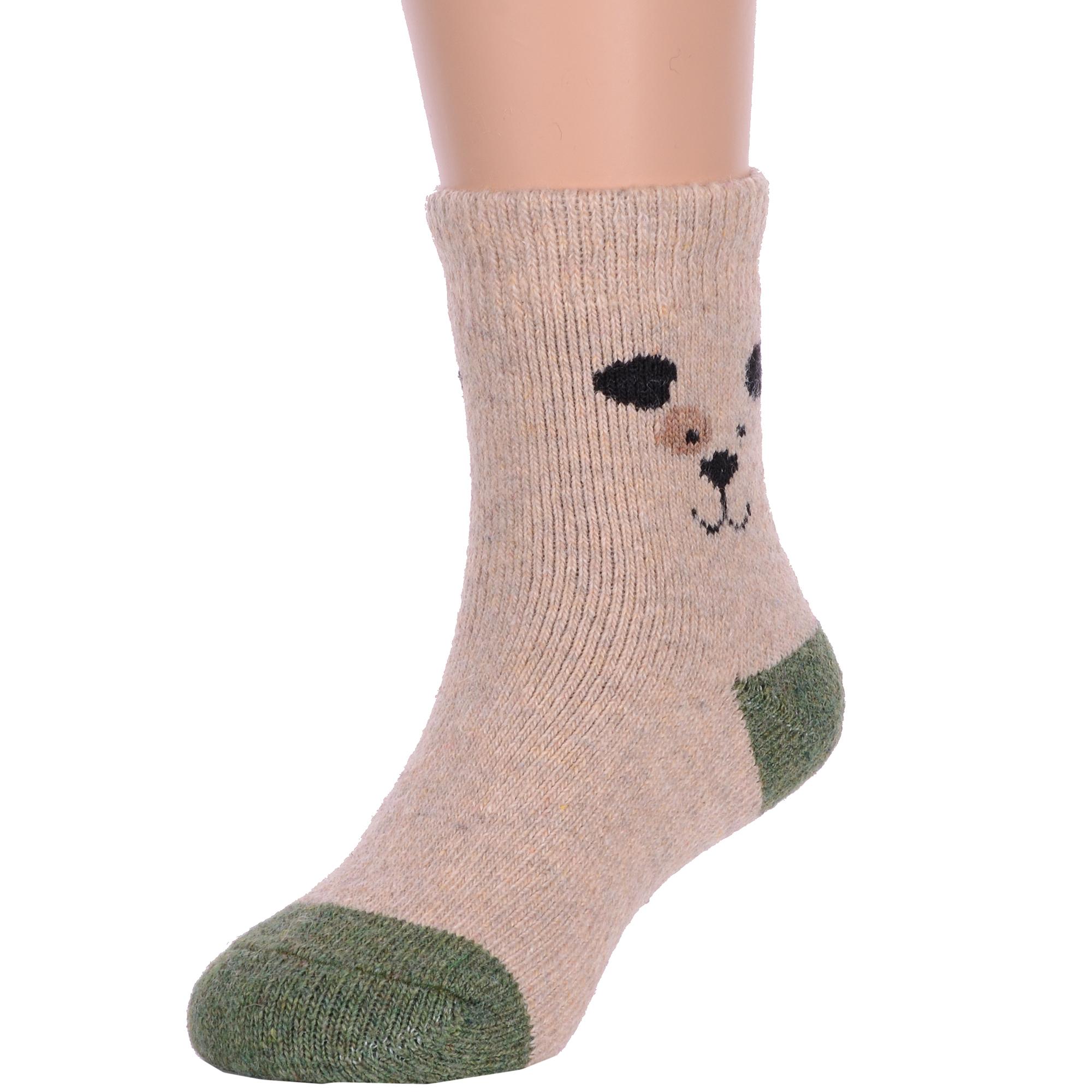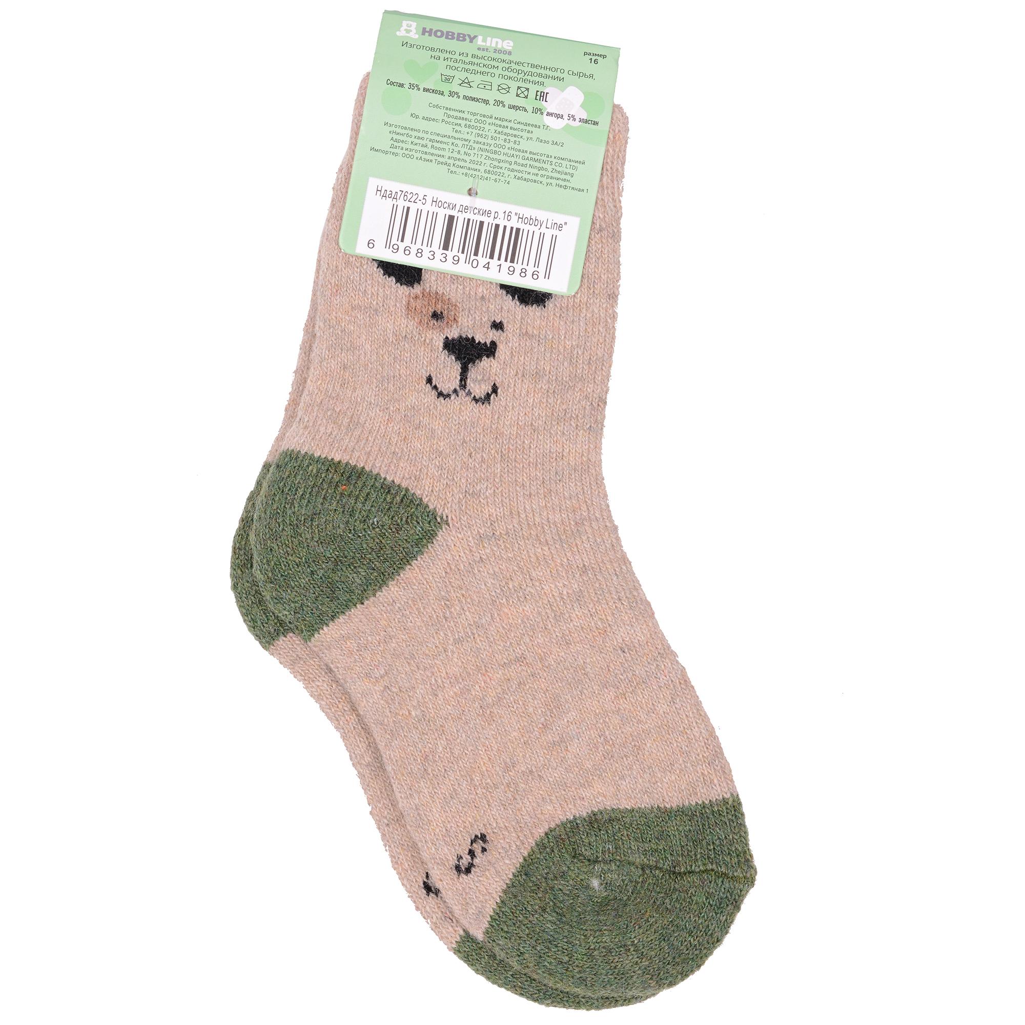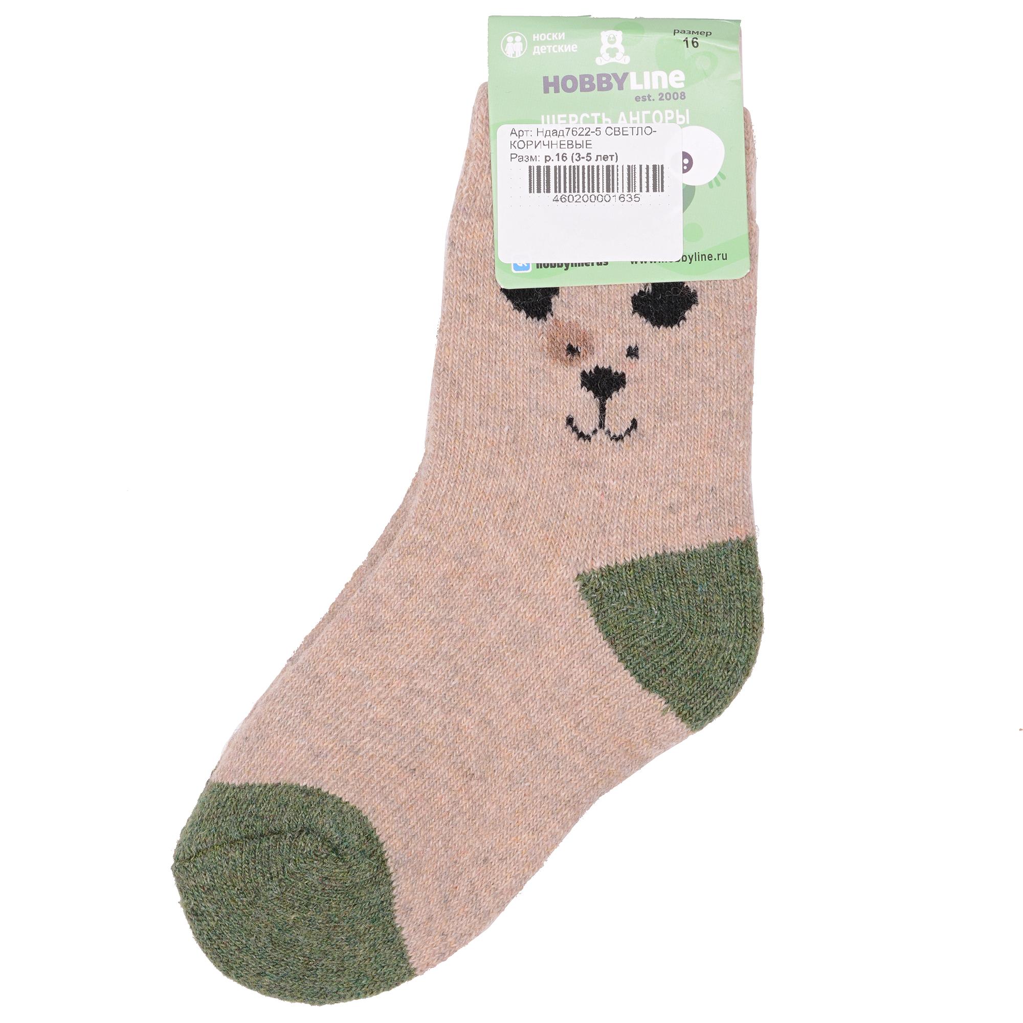 Зимние укороченные детские носки, цвет коричневый, теплые, повседневные, махровые, шов обычный (не бесшовные), принт (рисунок): контрастные пятка / мысок / резинка, животные, с узором, состав: 35% вискоза, 20% шерсть, 10% ангора, 30% полиэстер, 5% эластан, арт. Ндад7622-5. Производитель «Китай, страна бренда - Россия» под брендом «Hobby line».
