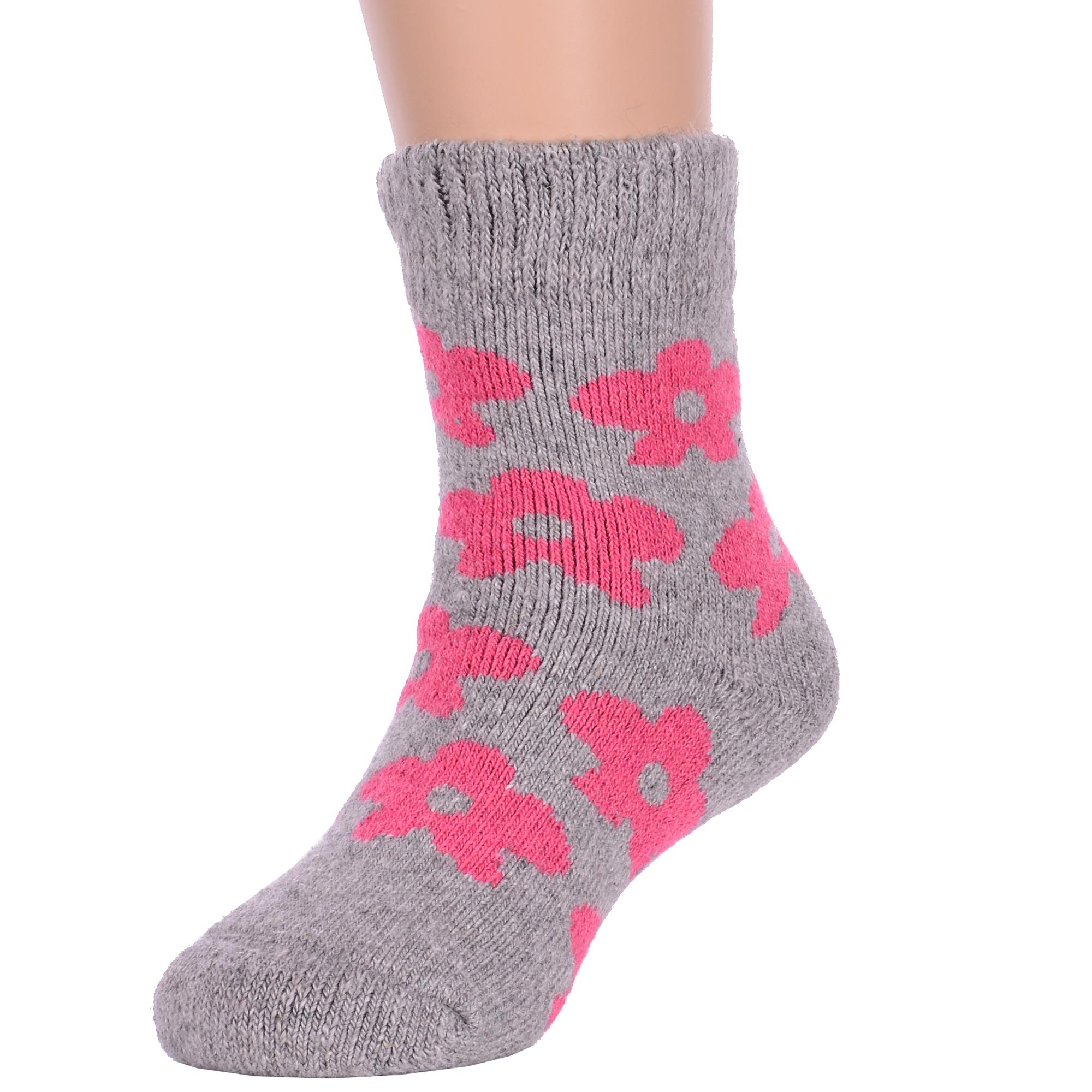 Зимние укороченные детские носки, цвет светло-серый, теплые, повседневные, махровые, шов обычный (не бесшовные), принт (рисунок): цветы / растения, с узором, состав: 35% вискоза, 20% шерсть, 10% ангора, 30% полиэстер, 5% эластан, арт. Ндад7615. Производитель «Китай, страна бренда - Россия» под брендом «Hobby line».