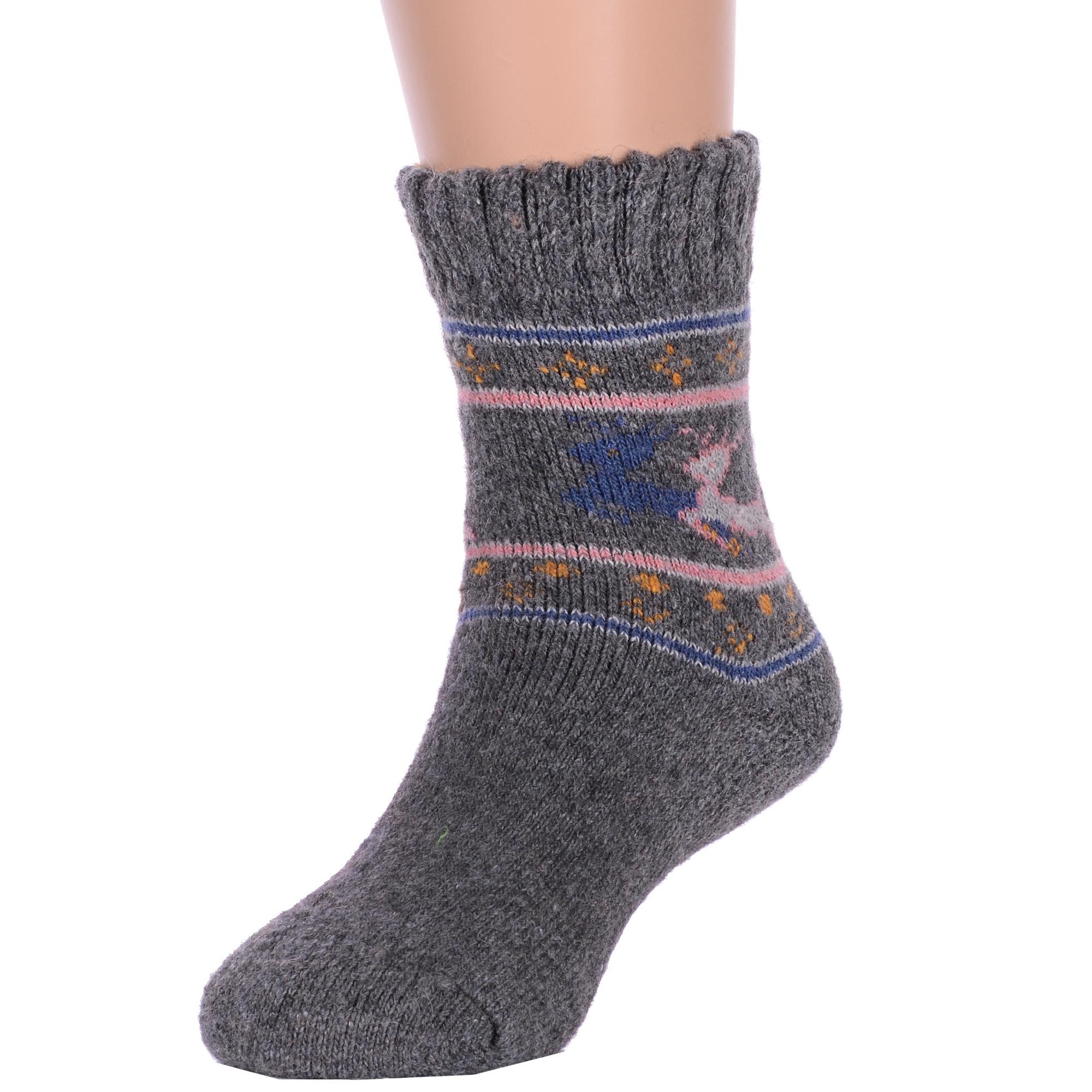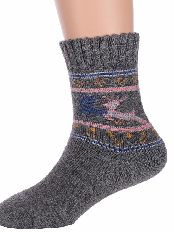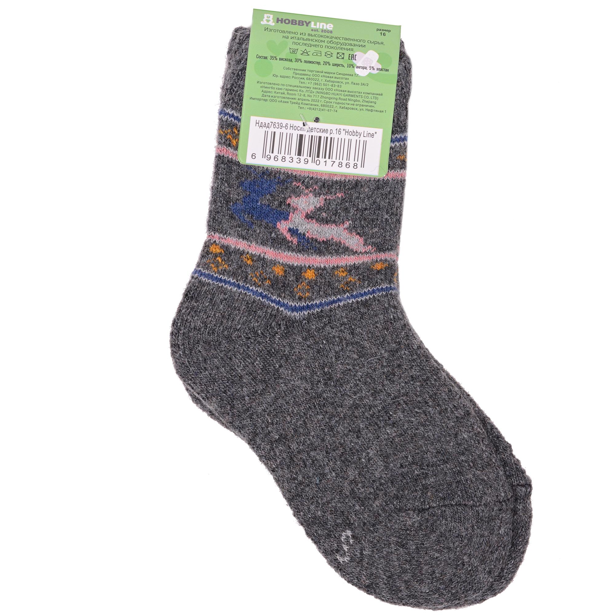 Зимние укороченные детские носки, цвет темно-серый, теплые, повседневные, махровые, шов обычный (не бесшовные), принт (рисунок): новый год, животные, с узором, состав: 35% вискоза, 20% шерсть, 10% ангора, 30% полиэстер, 5% эластан, арт. Ндад7639-6. Производитель «Китай, страна бренда - Россия» под брендом «Hobby line».