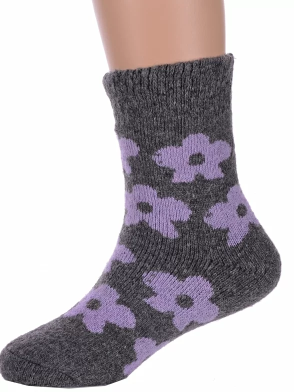 Зимние укороченные детские носки, цвет темно-серый, теплые, с принтом, махровые, состав: 35% вискоза, 20% шерсть, 10% ангора, 30% полиэстер, 5% эластан (состав на этикетке может отличаться), арт. Ндад7615. Производитель «Китай, страна бренда - Россия» под брендом «Hobby line».