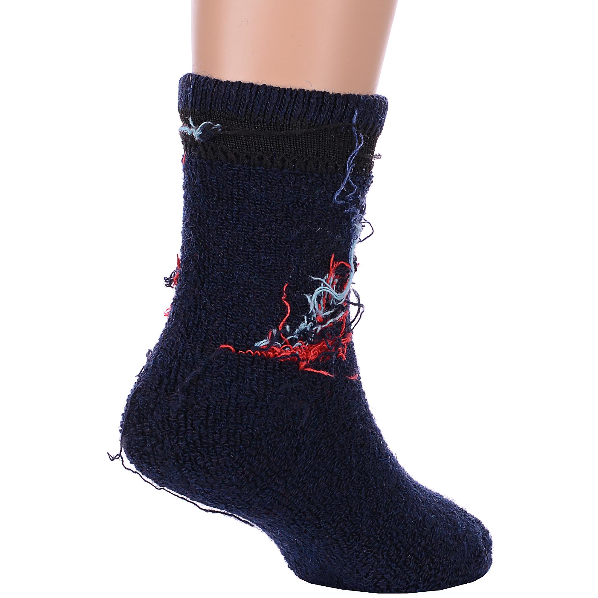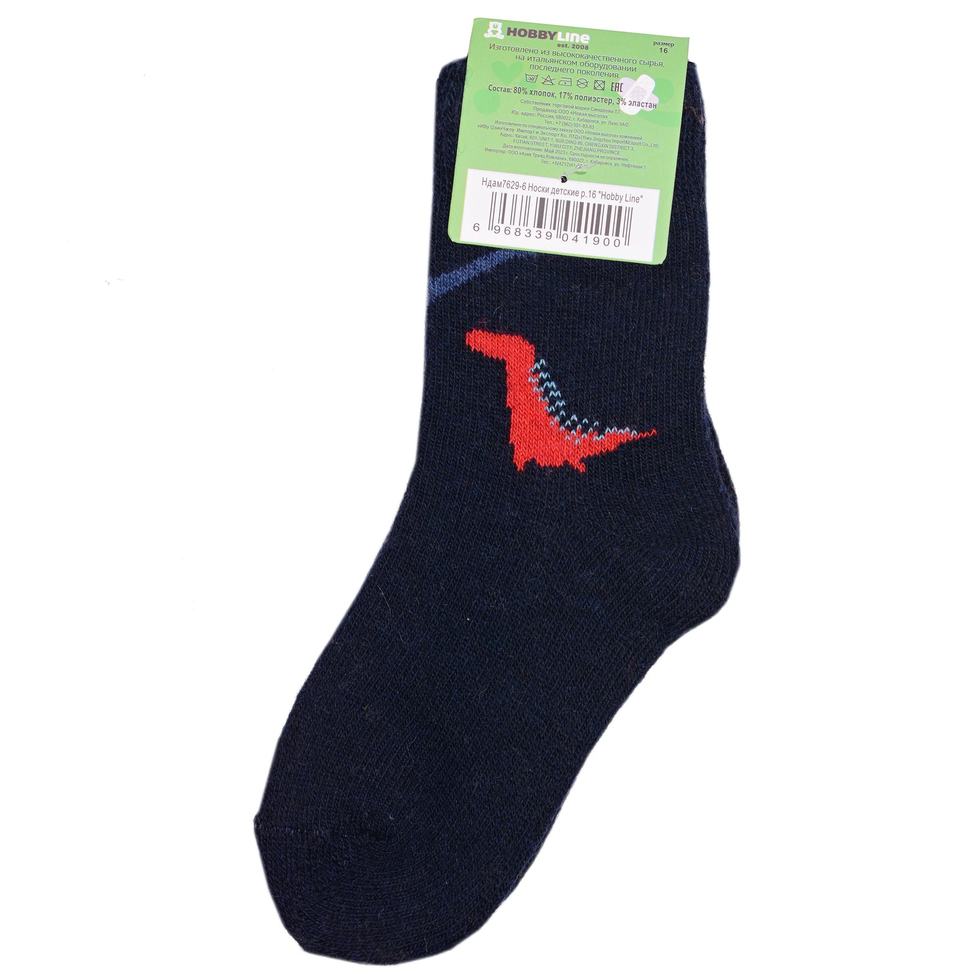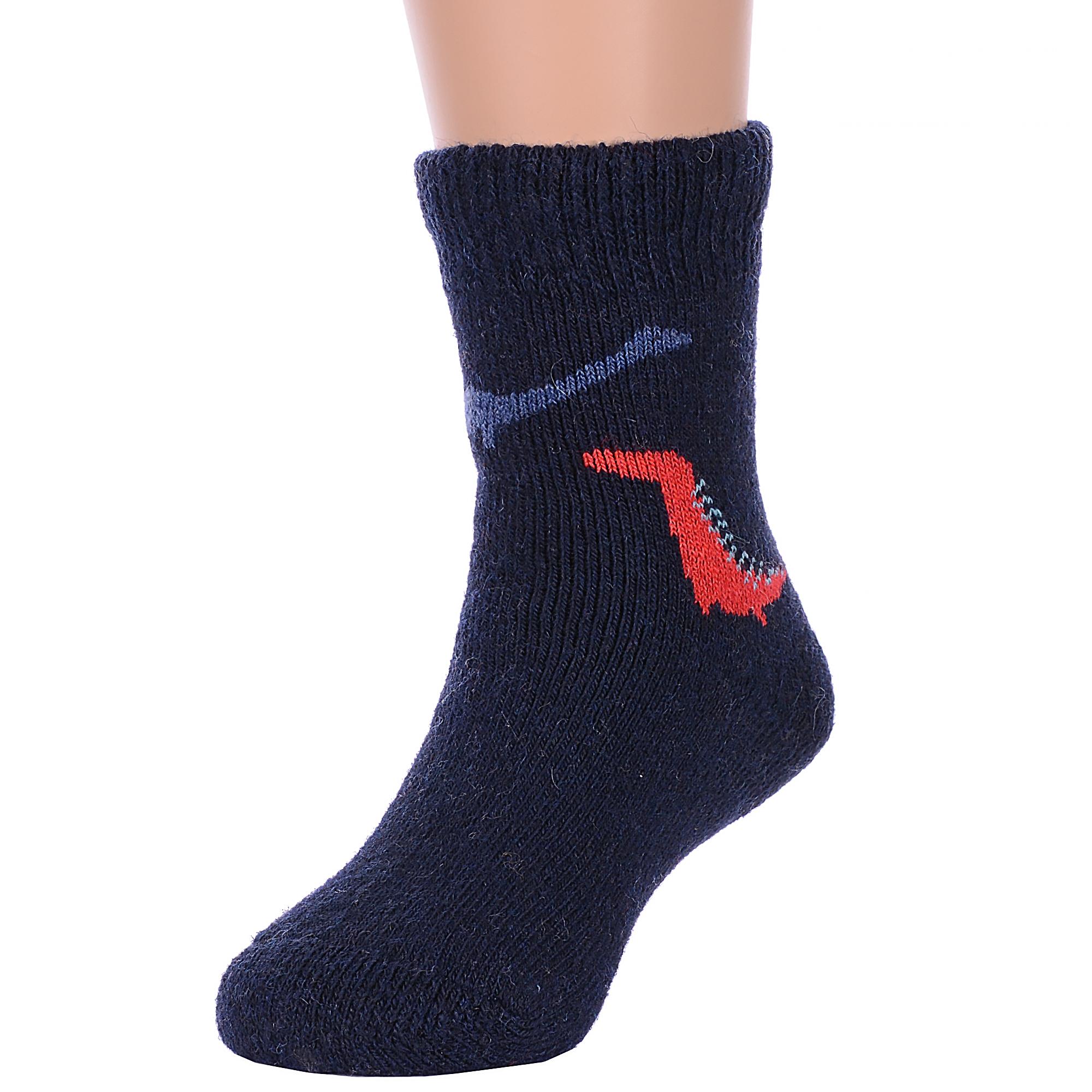 Зимние укороченные детские носки, цвет темно-синий, теплые, махровые, шов обычный (не бесшовные), принт (рисунок): животные, с узором, состав: 35% вискоза, 20% шерсть, 10% ангора, 30% полиэстер, 5% эластан, арт. 7629-6. Производитель «Китай, страна бренда - Россия» под брендом «Hobby line».