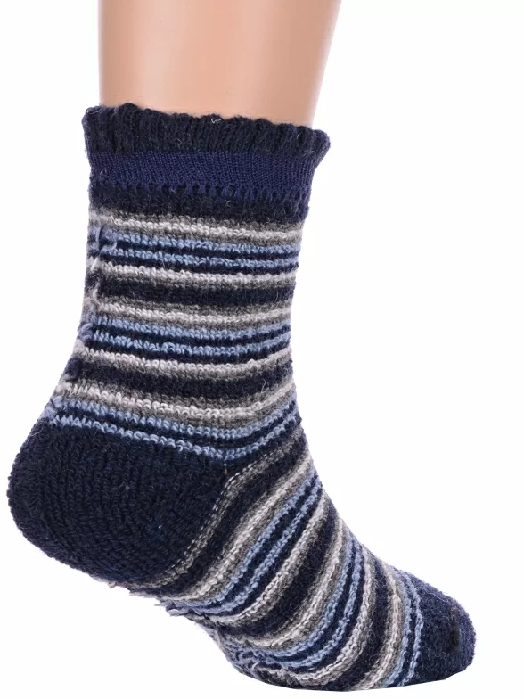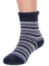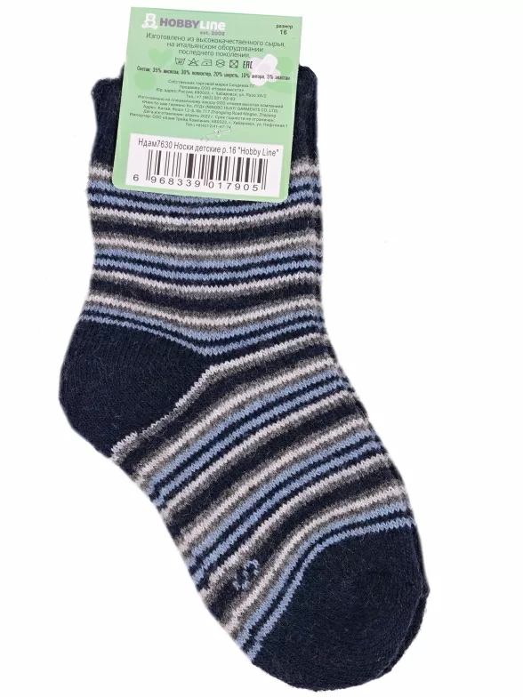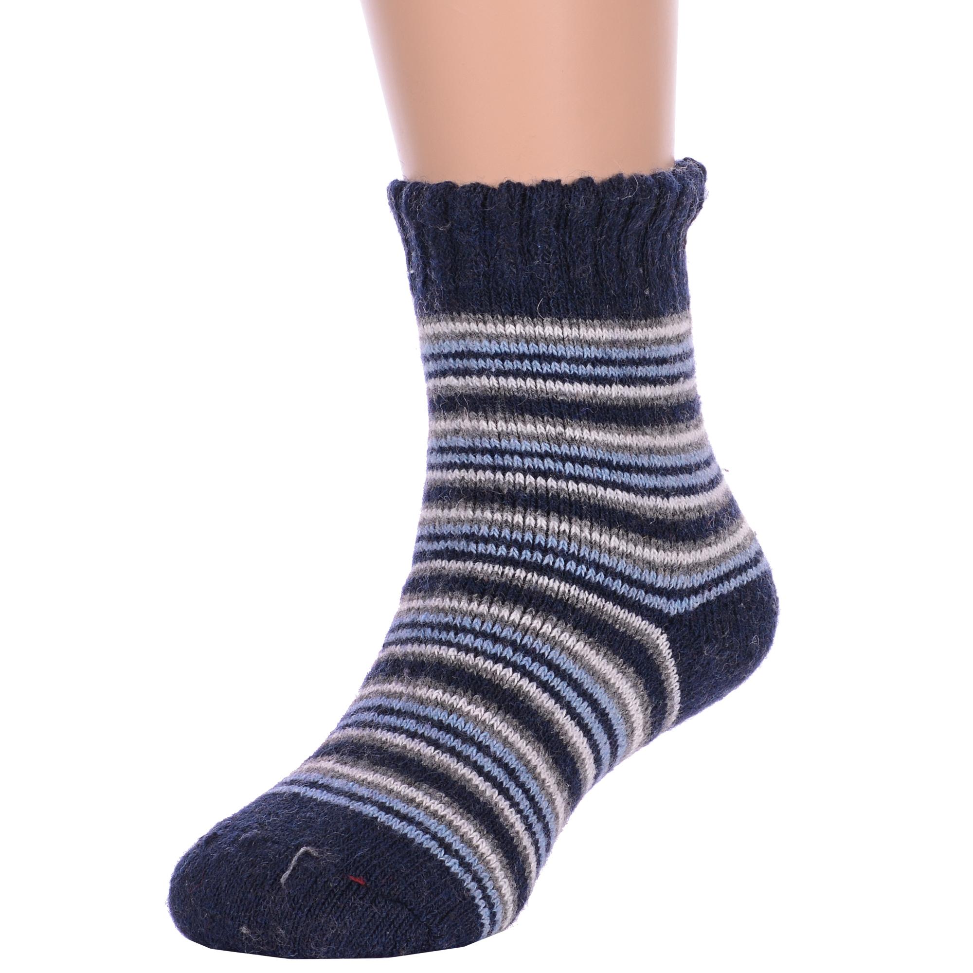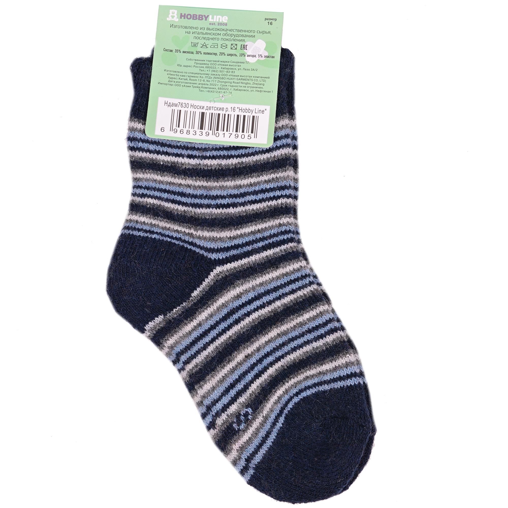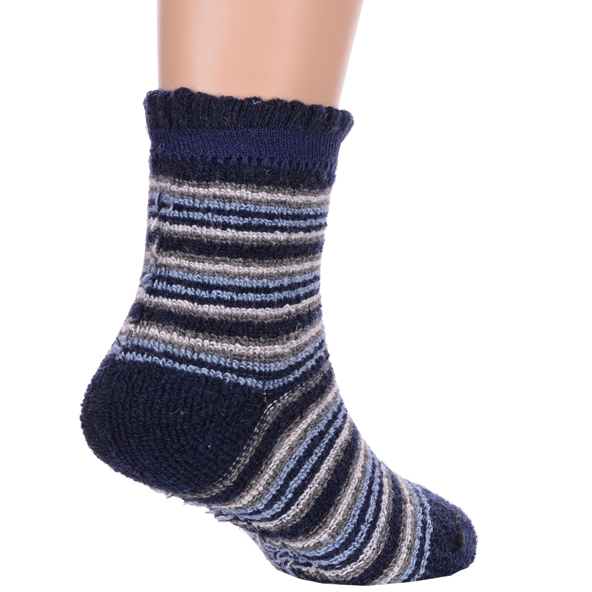 Зимние укороченные детские носки, цвет темно-синий, теплые, повседневные, махровые, шов обычный (не бесшовные), принт (рисунок): полоски, с узором, состав: 35% вискоза, 20% шерсть, 10% ангора, 30% полиэстер, 5% эластан, арт. Ндам7630. Производитель «Китай, страна бренда - Россия» под брендом «Hobby line».