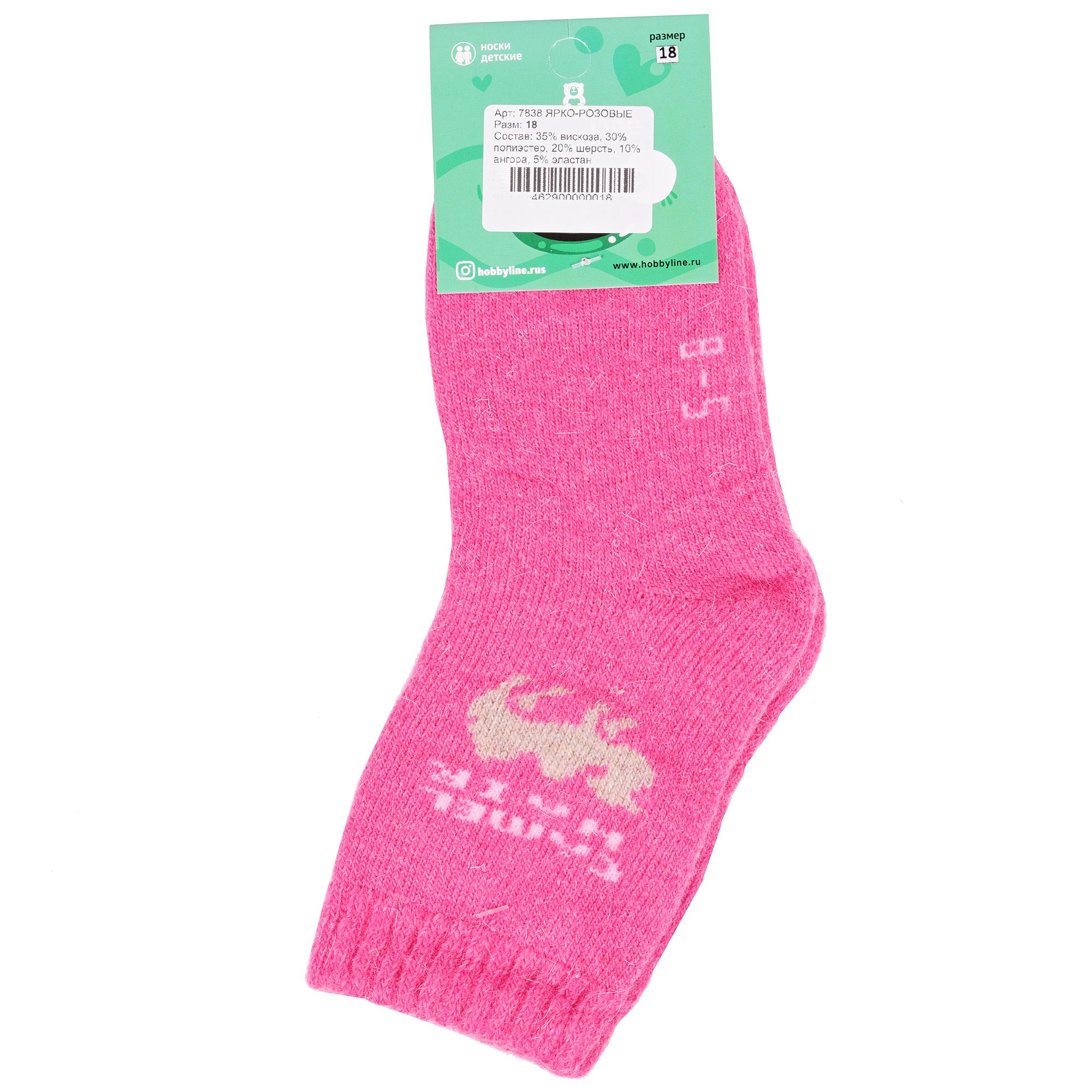 Зимние укороченные детские носки, цвет розовый, теплые, повседневные, махровые, шов обычный (не бесшовные), принт (рисунок): надписи, животные, с узором, состав: 35% вискоза, 20% шерсть, 10% ангора, 30% полиэстер, 5% эластан, арт. 7838. Производитель «Китай, страна бренда - Россия» под брендом «Hobby line».