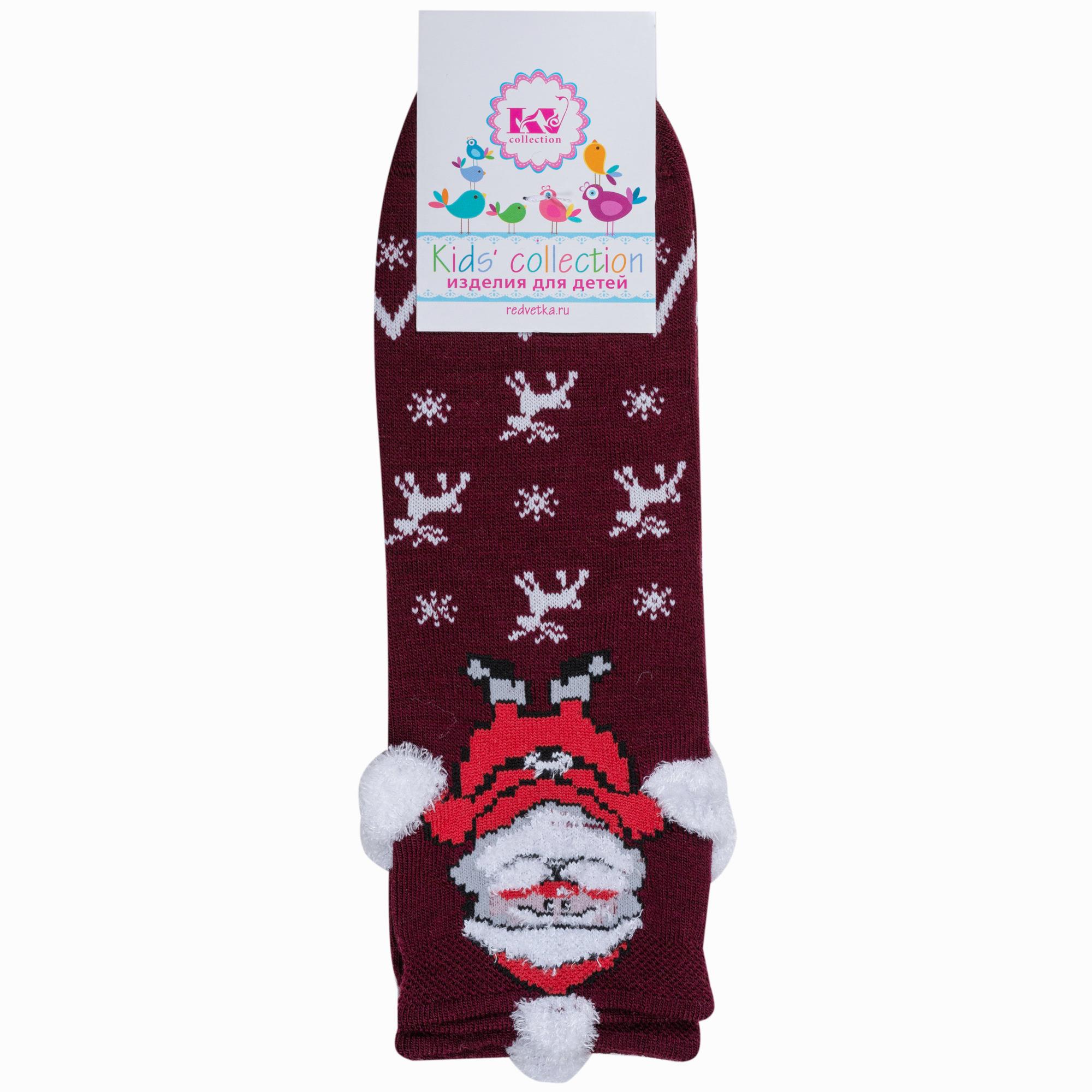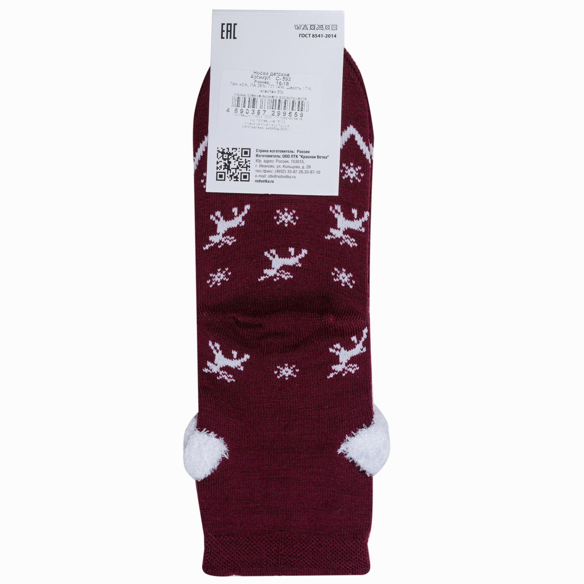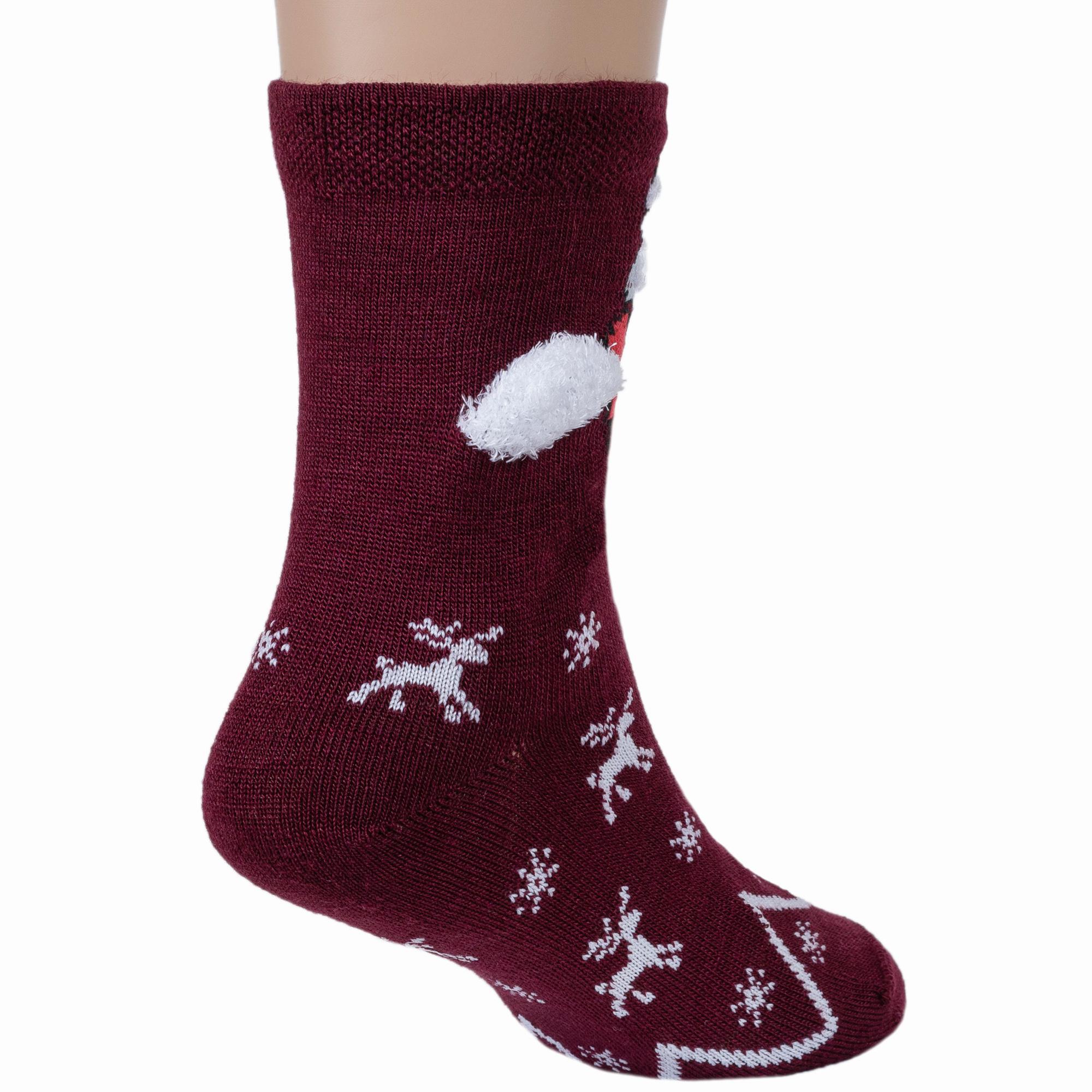 Зимние средней длины детские носки, цвет бордовый, необычные, повседневные, возможно бесшовные, принт (рисунок): пушистый, новый год, с узором, крупные контрастные рисунки, состав: 40% ПАН, 26% полиамид, 14% полипропилен, 17% шерсть, 3% эластан, арт. С-593. Производитель «КРАСНАЯ ВЕТКА» Россия под брендом «Красная ветка».