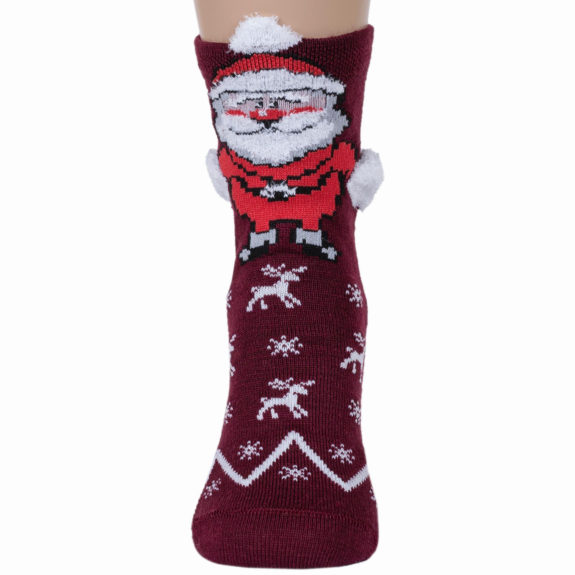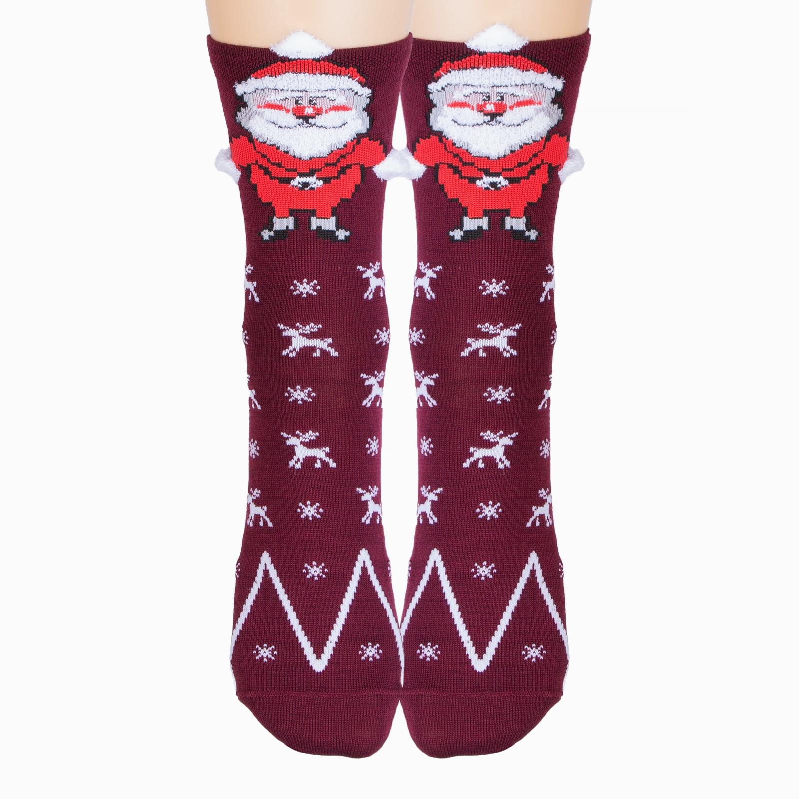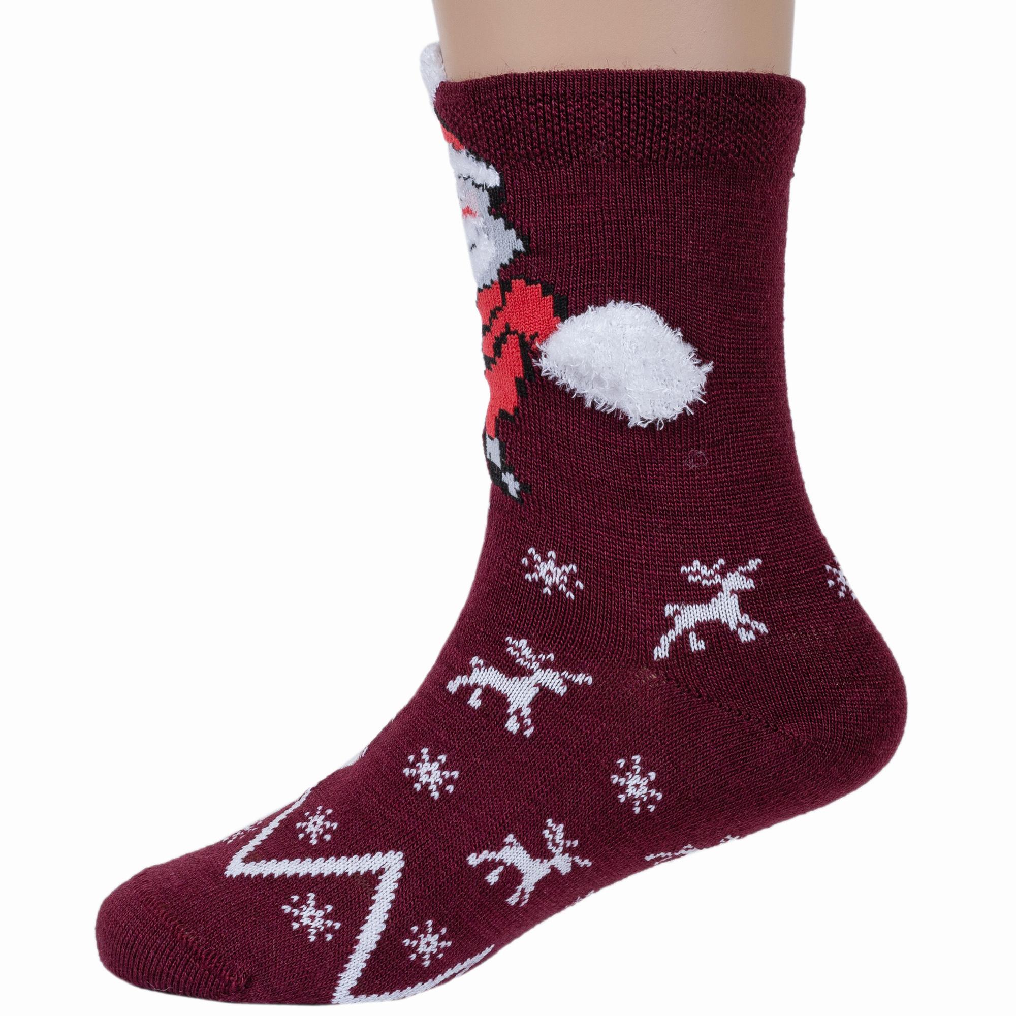 Зимние средней длины детские носки, цвет бордовый, необычные, повседневные, возможно бесшовные, принт (рисунок): пушистый, новый год, с узором, крупные контрастные рисунки, состав: 40% ПАН, 26% полиамид, 14% полипропилен, 17% шерсть, 3% эластан, арт. С-593. Производитель «КРАСНАЯ ВЕТКА» Россия под брендом «Красная ветка».
