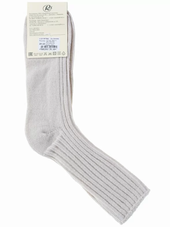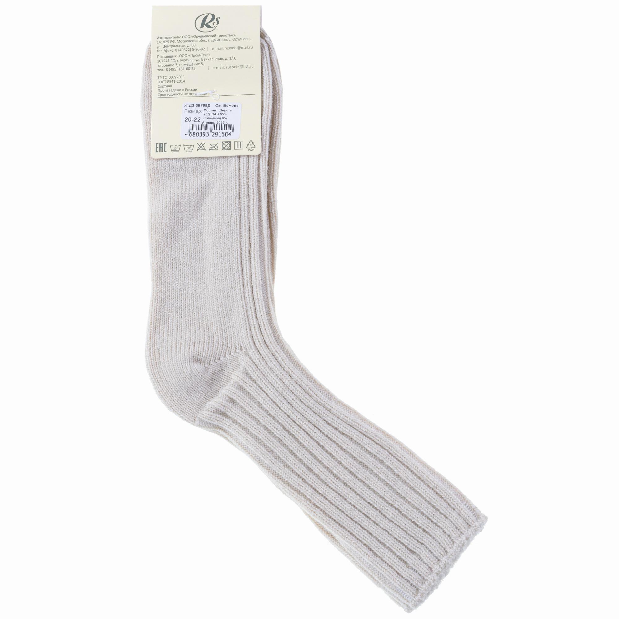 Зимние укороченные детские носки, цвет бежевый, теплые, с отворотом, классические, шов плоский, принт (рисунок): в рубчик, однотонный, состав: 28% шерсть, 65% ПАН, 6% полиамид, 1% эластан, арт. Д3-38798Д. Производитель «ООО Орудьевский трикотаж, Россия» под брендом «Rusocks (орудьевский трикотаж)».