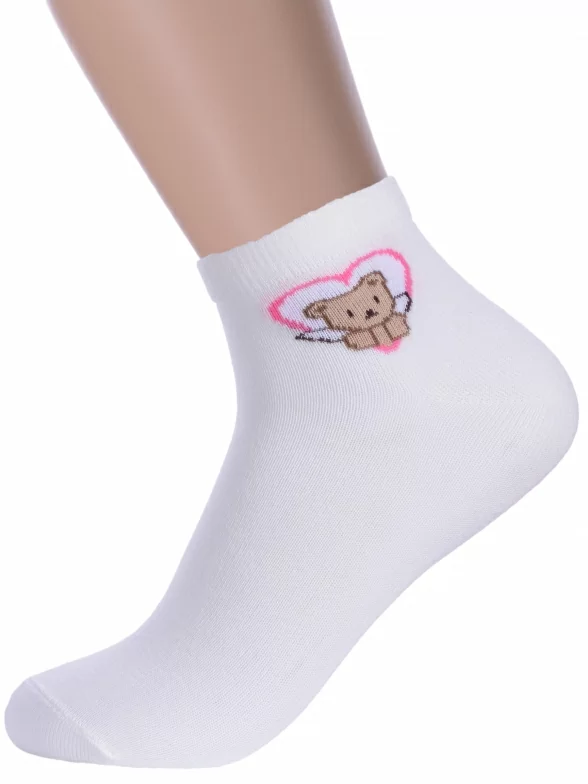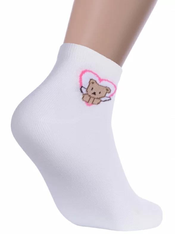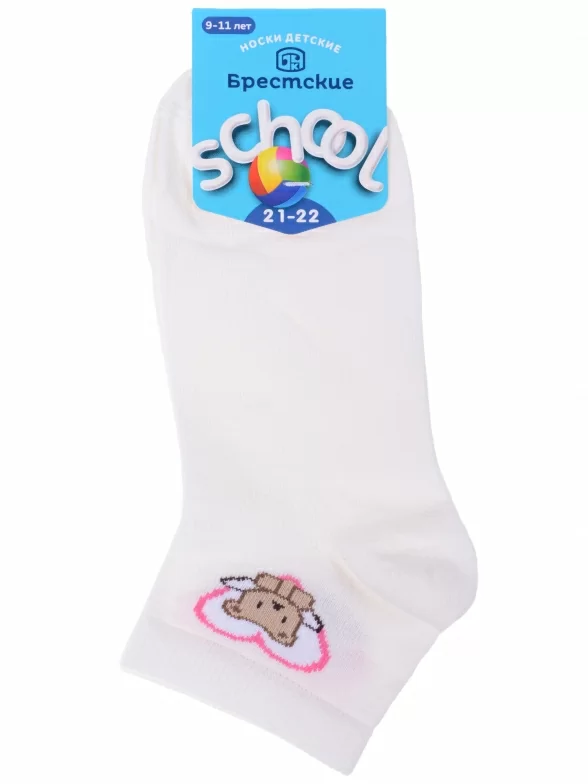 Круглогодичные укороченные детские носки, цвет бежевый, шов обычный (не бесшовные), принт (рисунок): сердечки / поцелуи / любовь, животные, состав: 74% хлопок, 24% полиамид, 2% эластан, арт. 15С3085. Производитель «Брестский чулочный комбинат ОАО, Беларусь» под брендом «Брестские (бчк)».