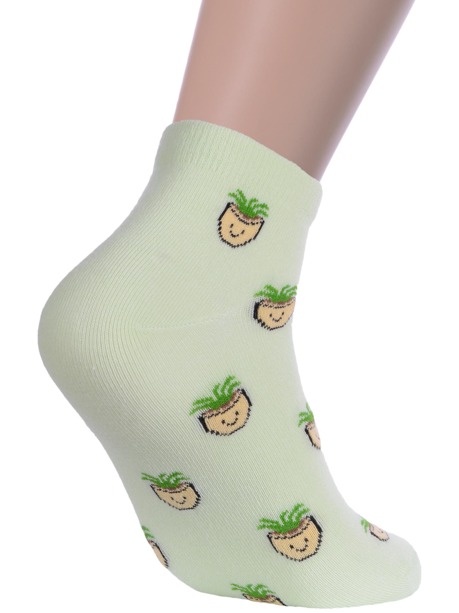 Круглогодичные укороченные детские носки, цвет зеленый, шов обычный (не бесшовные), принт (рисунок): цветы / растения, состав: 74% хлопок, 24% полиамид, 2% эластан, арт. 15С3085. Производитель «Брестский чулочный комбинат ОАО, Беларусь» под брендом «Брестские (бчк)».