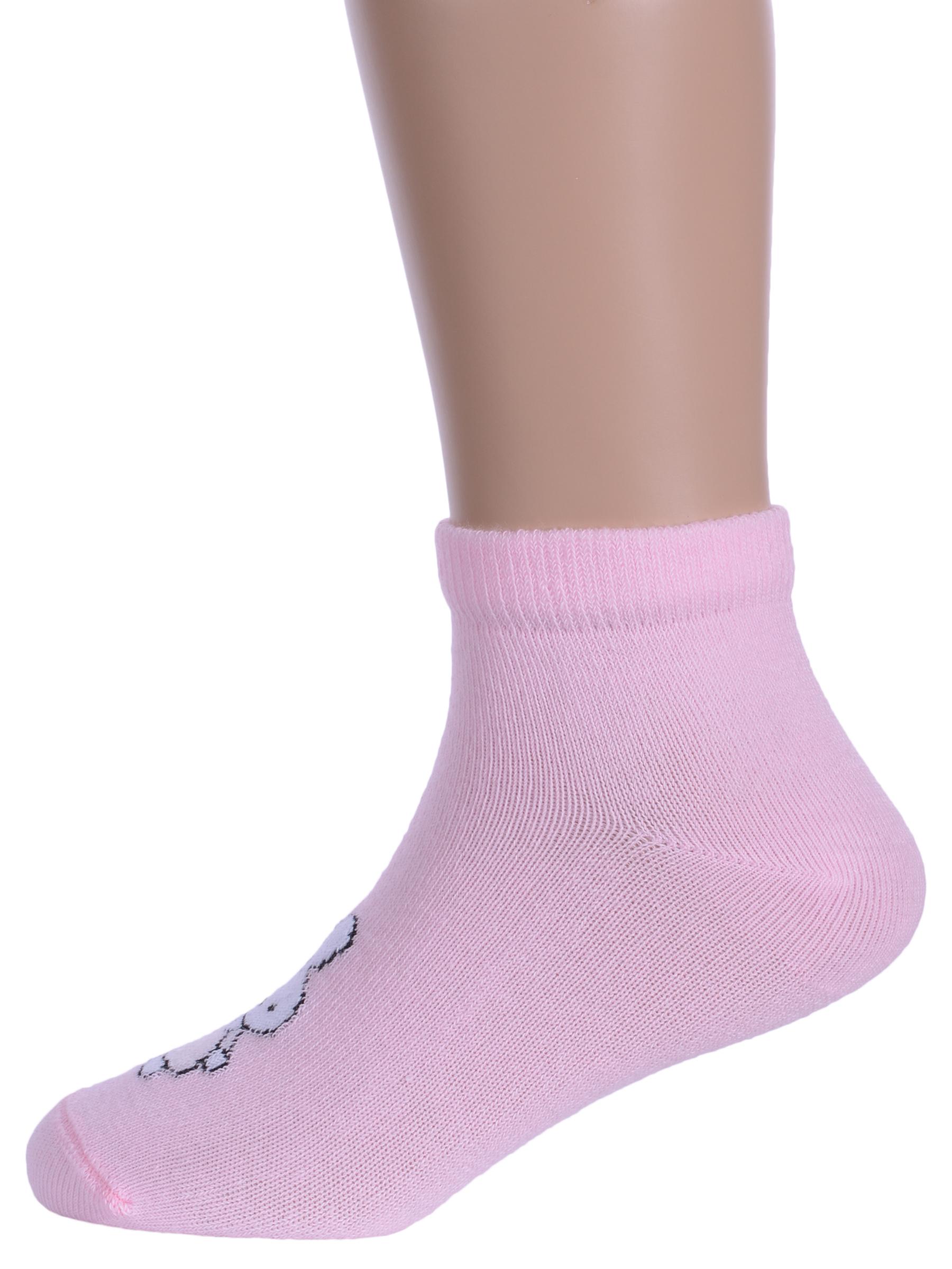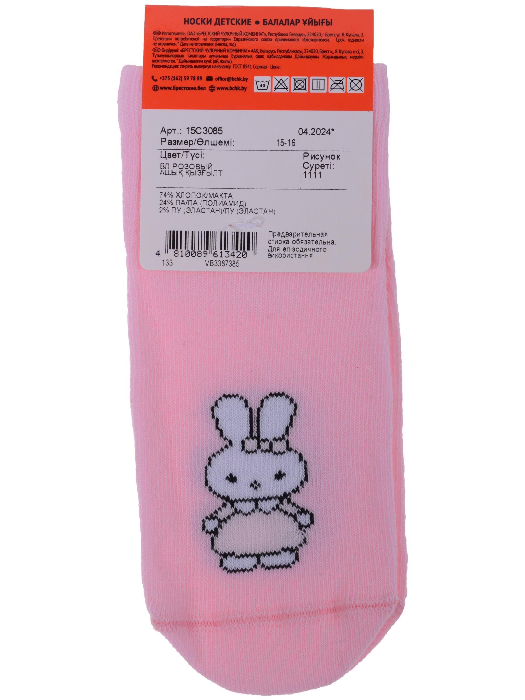 Круглогодичные укороченные детские носки, цвет розовый, шов обычный (не бесшовные), принт (рисунок): животные, состав: 74% хлопок, 24% полиамид, 2% эластан, арт. 15С3085. Производитель «Брестский чулочный комбинат ОАО, Беларусь» под брендом «Брестские (бчк)».
