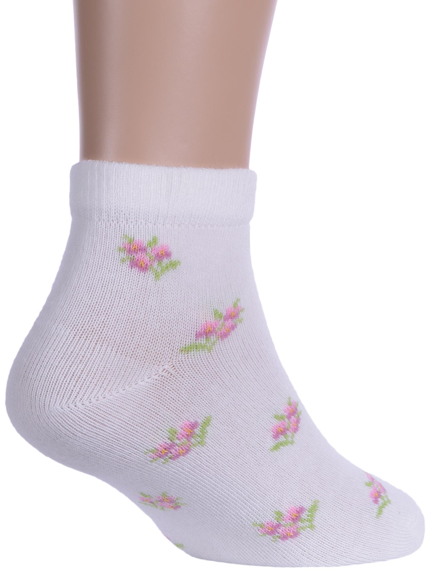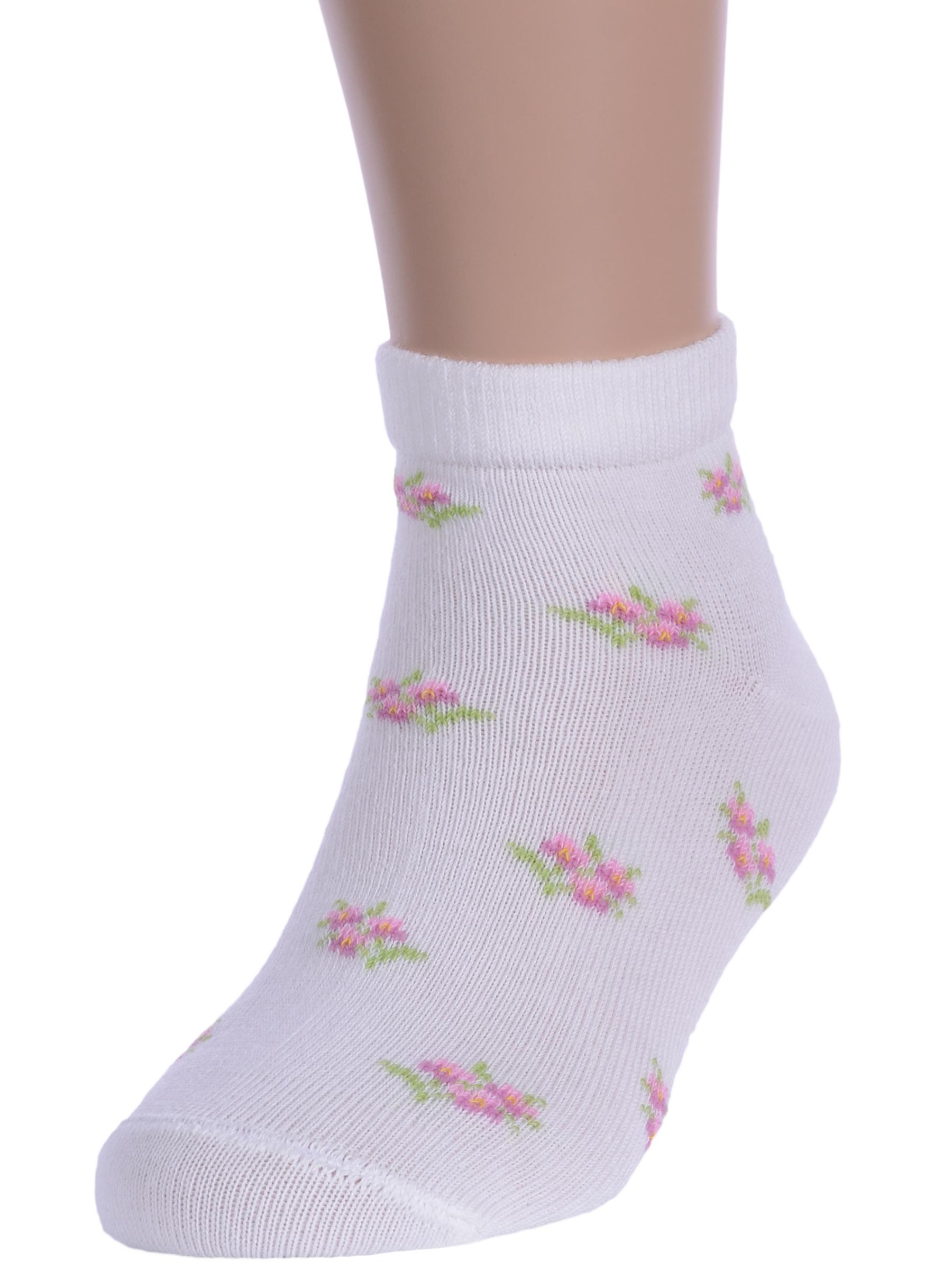 Круглогодичные укороченные детские носки, цвет бежевый, шов обычный (не бесшовные), принт (рисунок): цветы / растения, состав: 74% хлопок, 24% полиамид, 2% эластан, арт. 15С3085. Производитель «Брестский чулочный комбинат ОАО, Беларусь» под брендом «Брестские (бчк)».