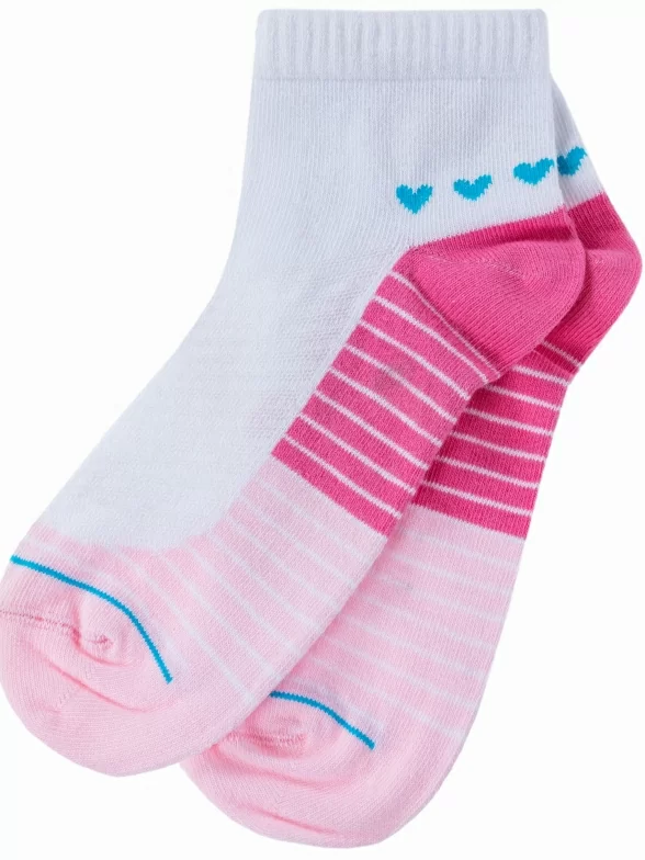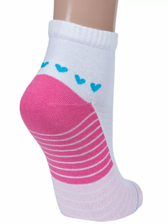 Детские короткие носки от Бресткого Чулочного Комбината связаны из пряжи на основе хлопка. Модель украшена принтом в виде полосок, сердечек.