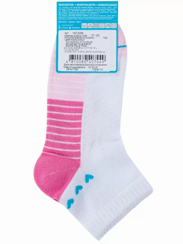 Детские укороченные носки Брестские (БЧК), 15С3085, рис. 162, БЕЛО-РОЗОВЫЕ