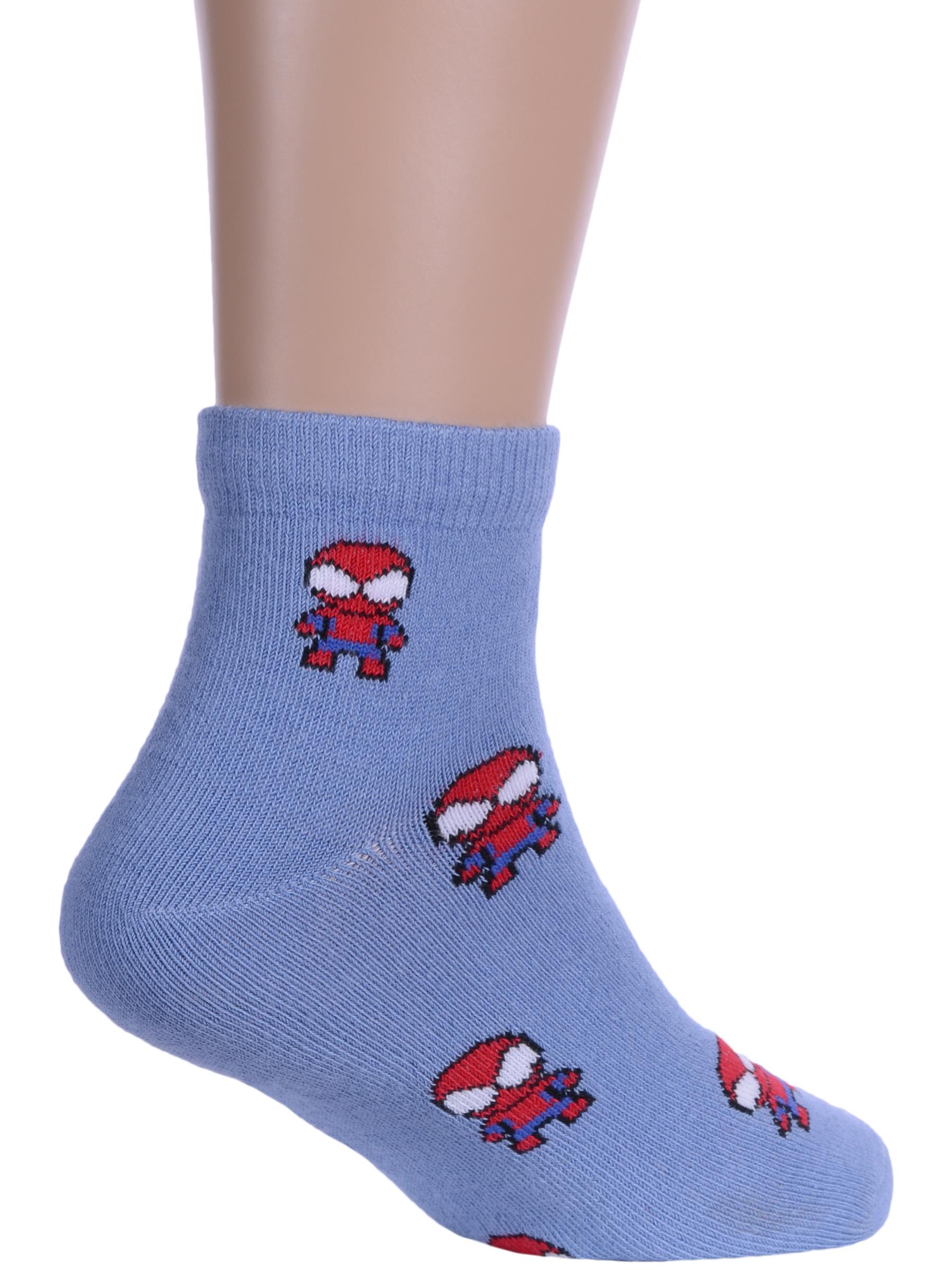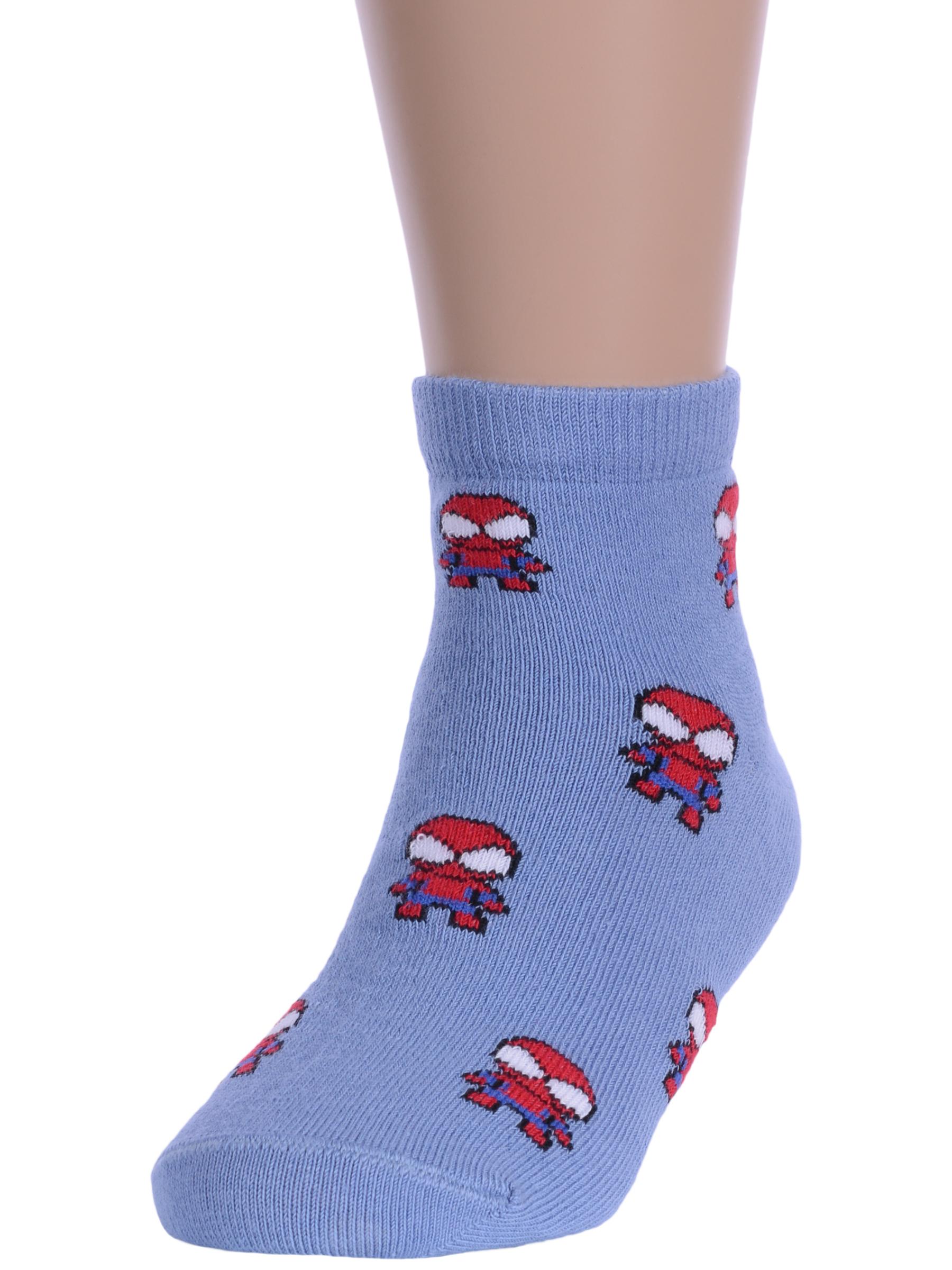 Круглогодичные укороченные детские носки, цвет джинс, шов обычный (не бесшовные), принт (рисунок): фильмы / сериалы / мультики, знаменитости, состав: 74% хлопок, 24% полиамид, 2% эластан, арт. 15С3085. Производитель «Брестский чулочный комбинат ОАО, Беларусь» под брендом «Брестские (бчк)».