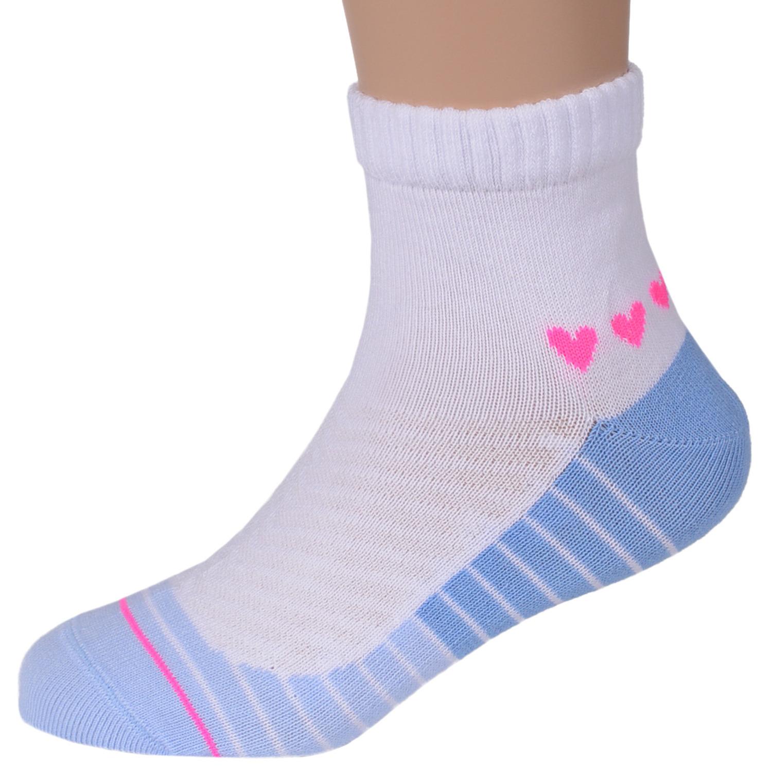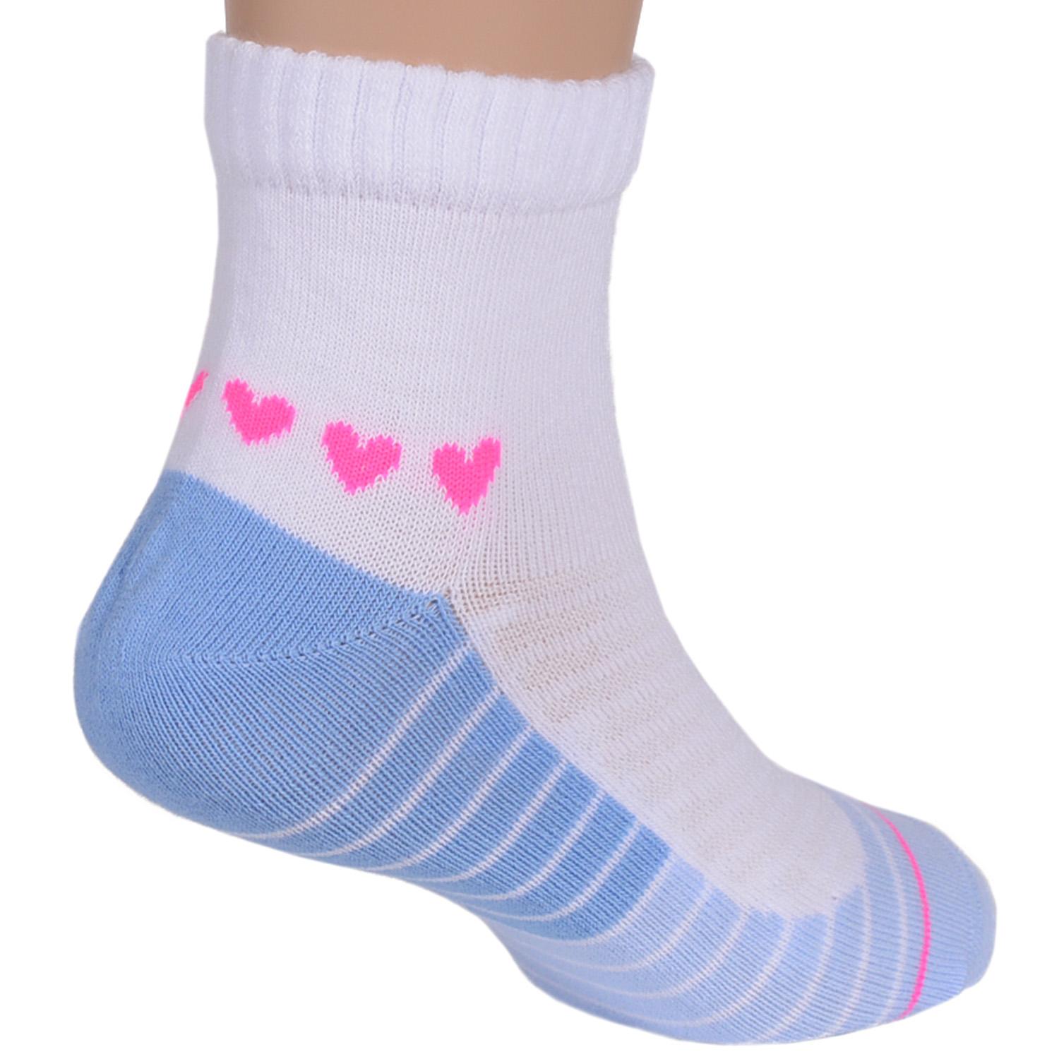 Детские короткие носки от Бресткого Чулочного Комбината связаны из пряжи на основе хлопка. Модель украшена принтом в виде полосок, сердечек.