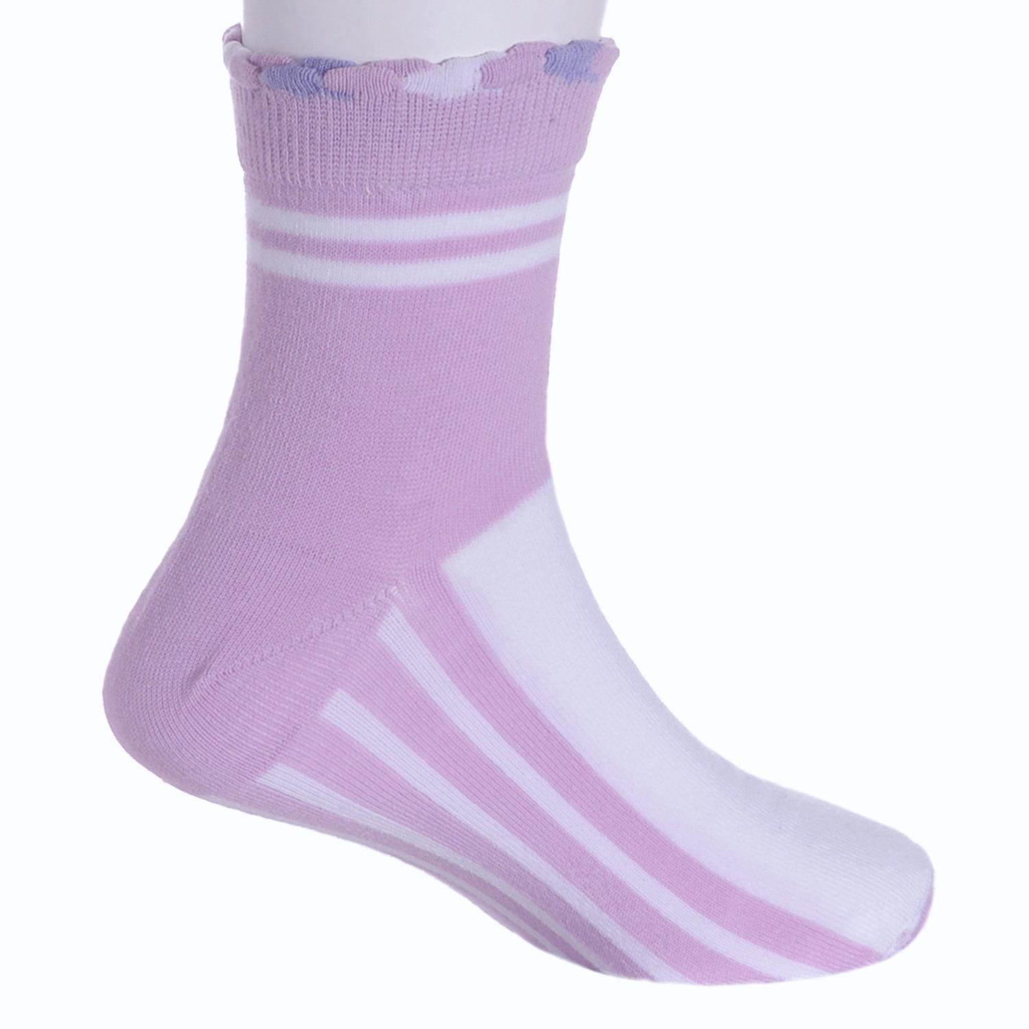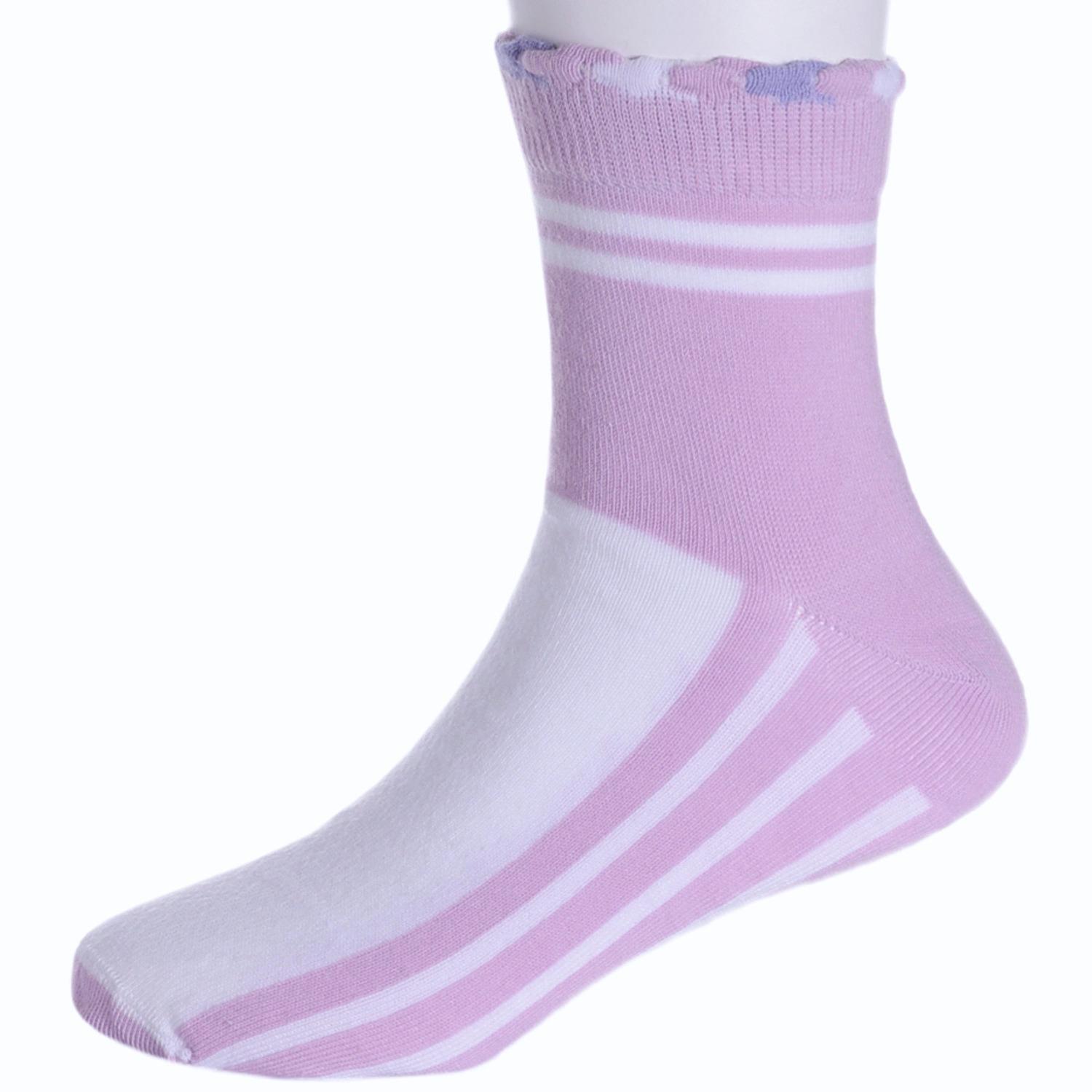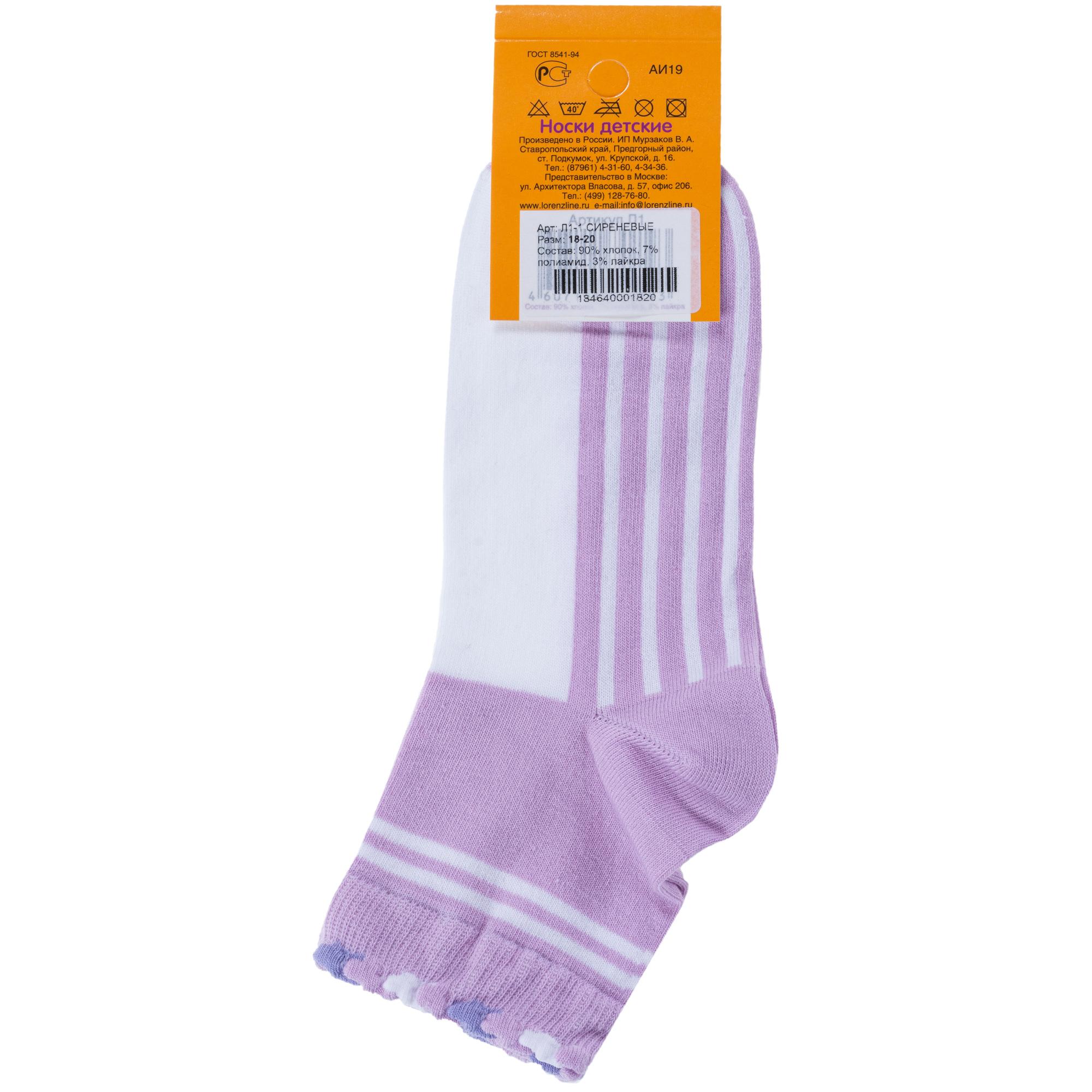 Круглогодичные укороченные детские носки, цвет сиреневый, классические, шов обычный (не бесшовные), принт (рисунок): спортивные, полоски, с узором, состав: 90% хлопок, 7% полиамид, 3% эластан (лайкра), арт. Л1. Производитель «ИП Мурзаков В.А., Ставропольский край, Россия» под брендом «Lorenzline».