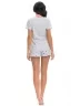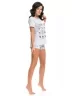 Удобная женская пижама в модном дизайне. Верх – яркая футболка с принтом, на котором изображены любимые напитки, с которых начинается бодрое утро. Низ – светлые короткие шортики с романтчиеским принтом, отличающиеся удобным эластичным поясом.