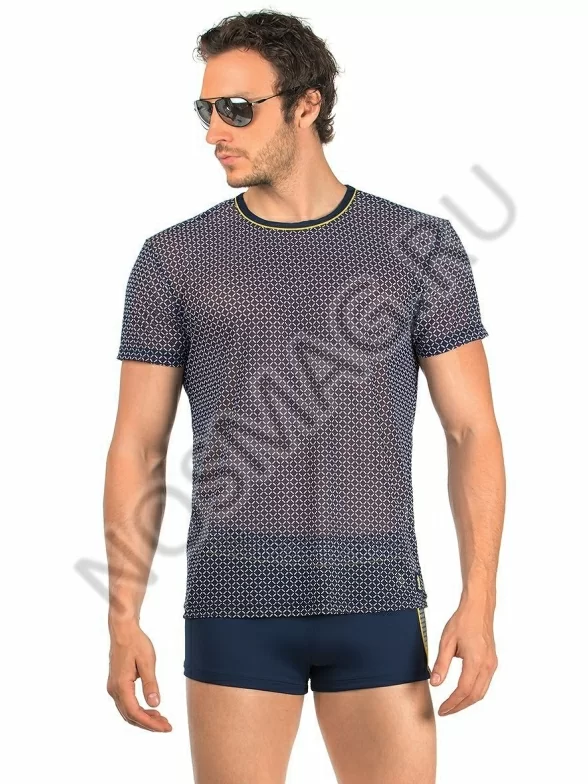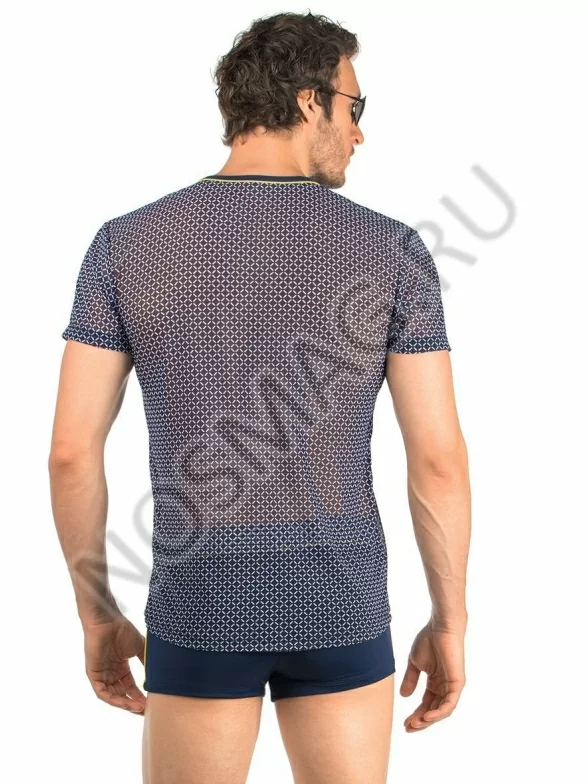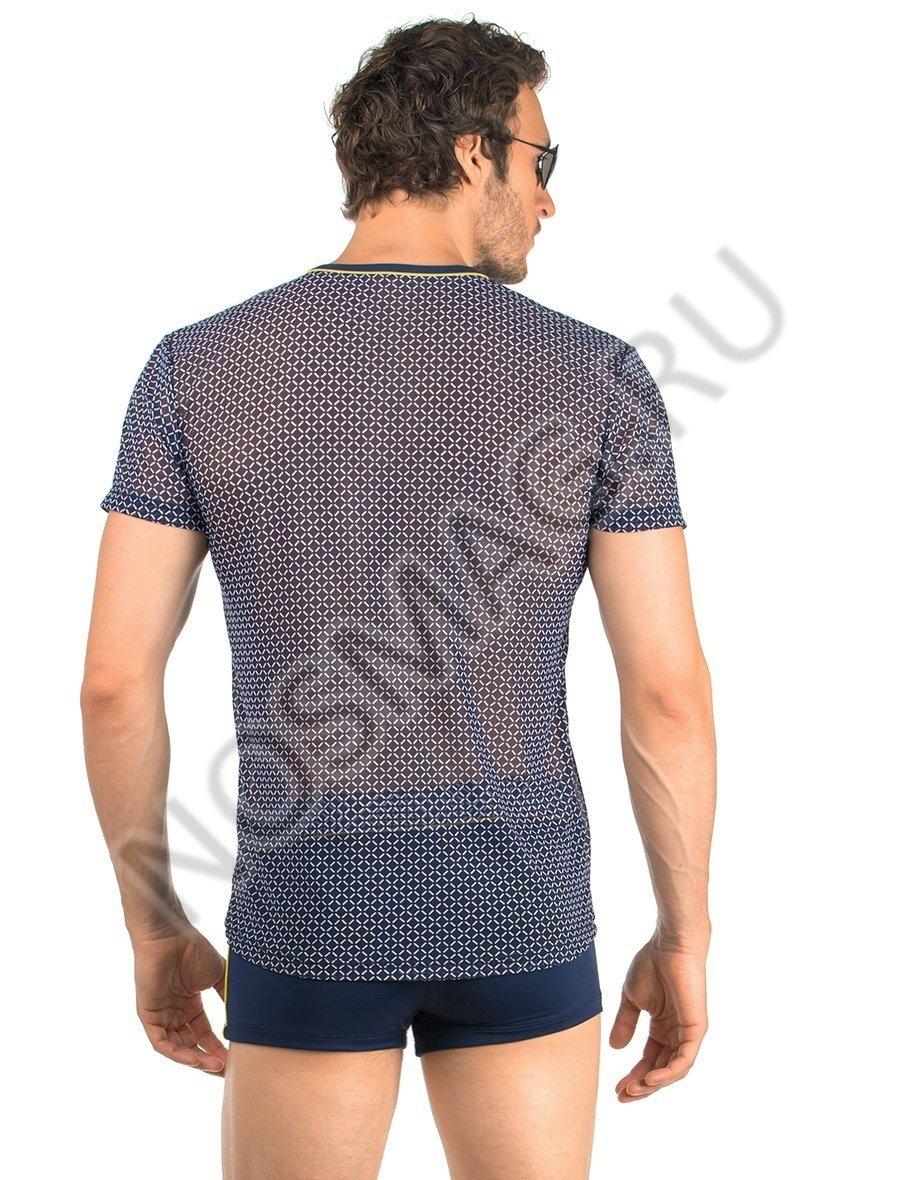 Синяя мужская футболка из мягкой эластичной сетки с графическим принтом. Не требует глажения, быстро сохнет и устойчива к появлению затяжек.