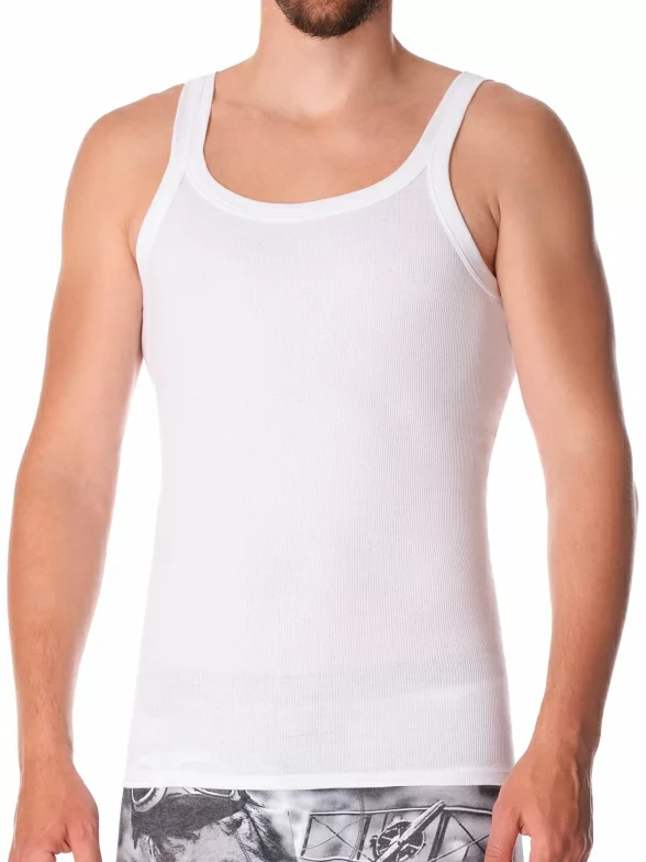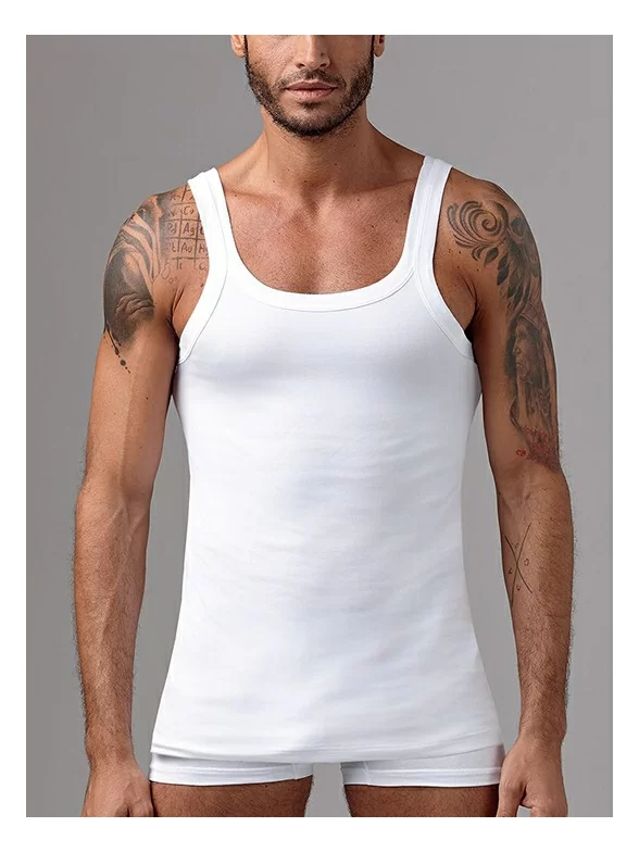 Облегающая мужская майка-безрукавка. Модель прямого кроя с круглым вырезом горловины. Качественный трикотаж с высоким содержанием хлопка очень приятен к телу.