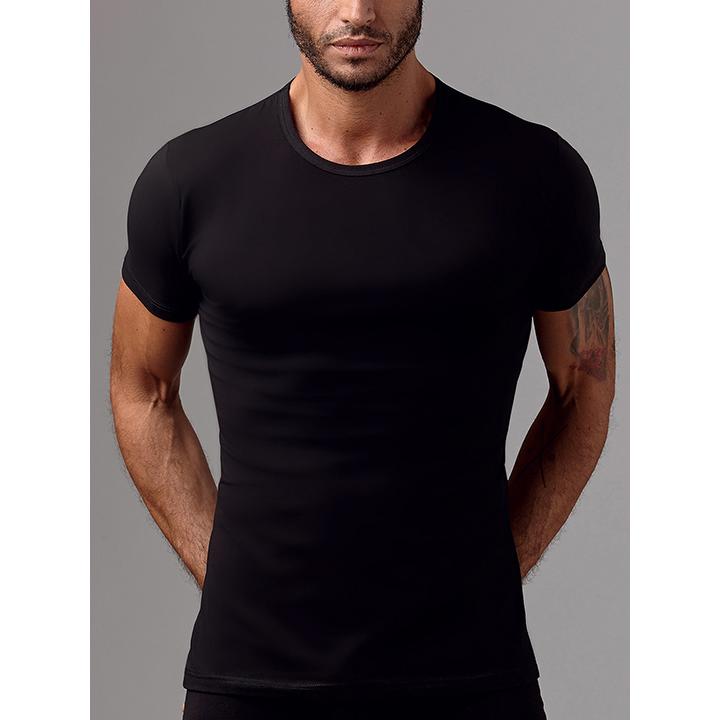 Облегающая мужская футболка с круглым вырезом горловины и коротким рукавом. Однотонная модель из приятного деликатного трикотажа станет универсальным элементом гардероба!