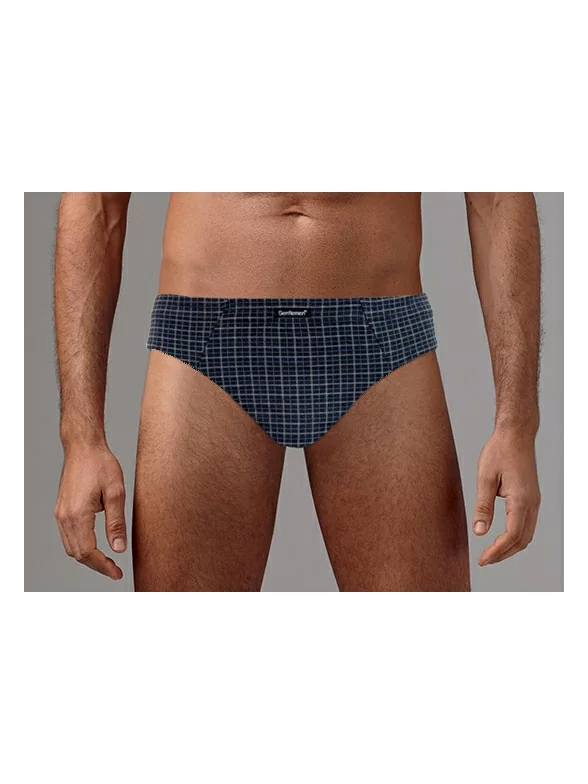 Удобные мужские трусы-слип в клетку, сделанные из 100% хлопка. Они отличаются комфортным втачным поясом и передней деталью без центрального шва.