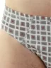 Модель имеет стандартную посадку и узкий бочок. Трусы оформлены геометрическим принтом с контрастными акцентами и фирменной нашивкой с логотипом.
