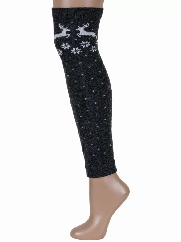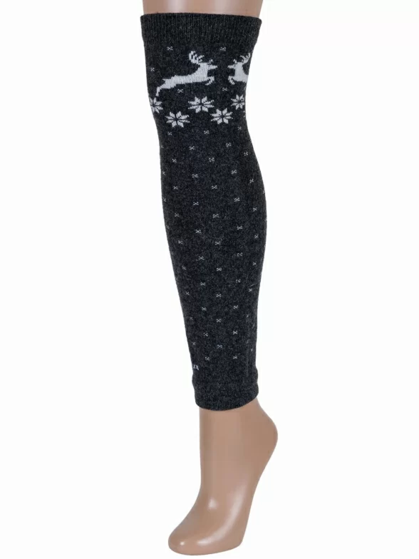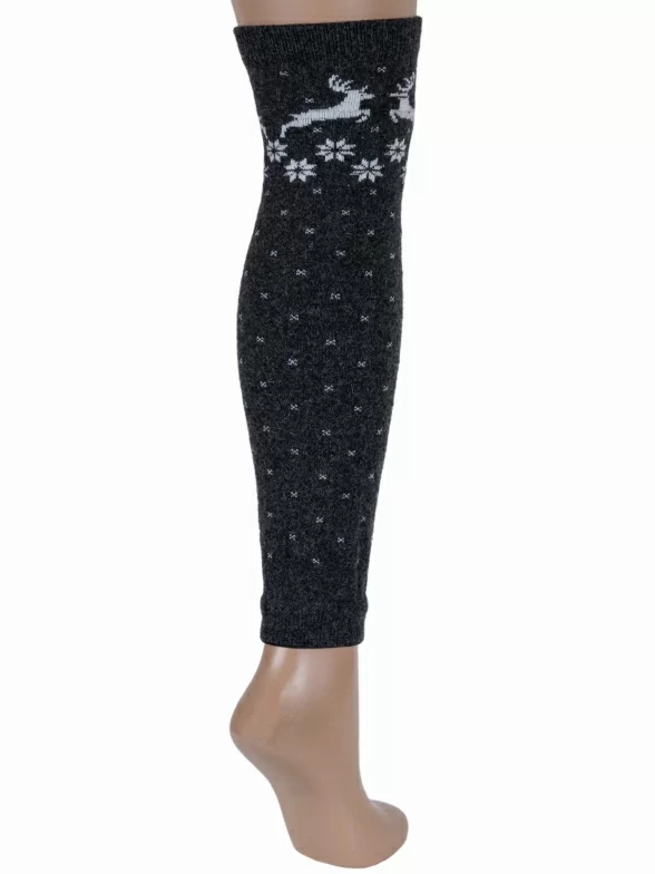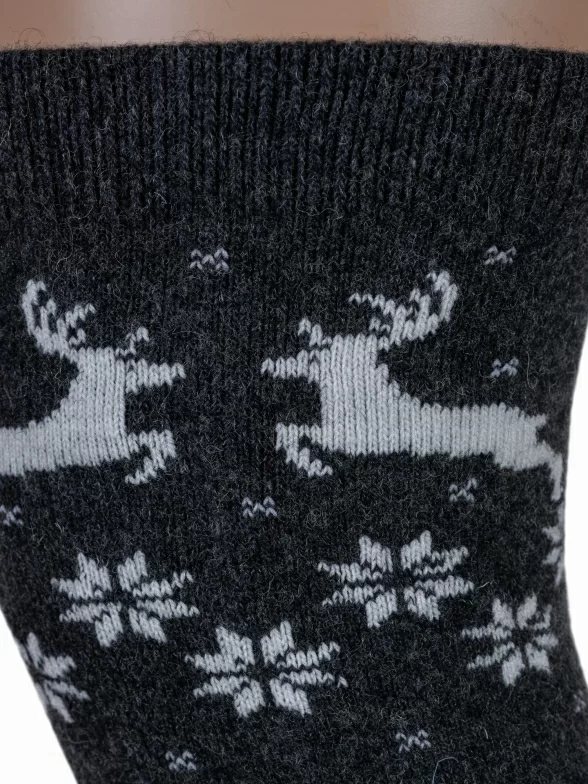 Модель длиной от щиколотки немного выше колена с принтом в виде оленей и снежинок в стиле "норвежский жаккард".