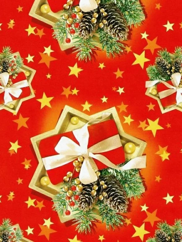 Упаковка 1 кейса в подарочную бумагу "Новый год в красном", ,