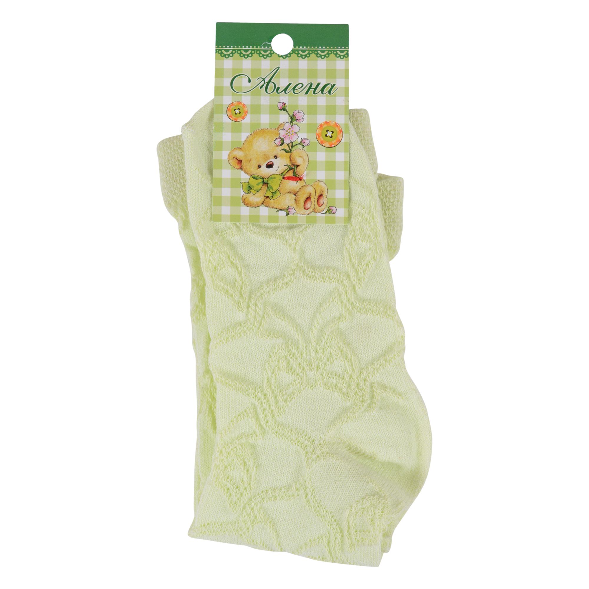 Летние детские гольфы, цвет салатовый, классические, шов обычный (не бесшовные), принт (рисунок): цветы / растения, с узором, однотонный, состав: 90% хлопок, 10% эластан, арт. Д305. Производитель «Алена (г. Чебоксары)» Россия под брендом «Алена».