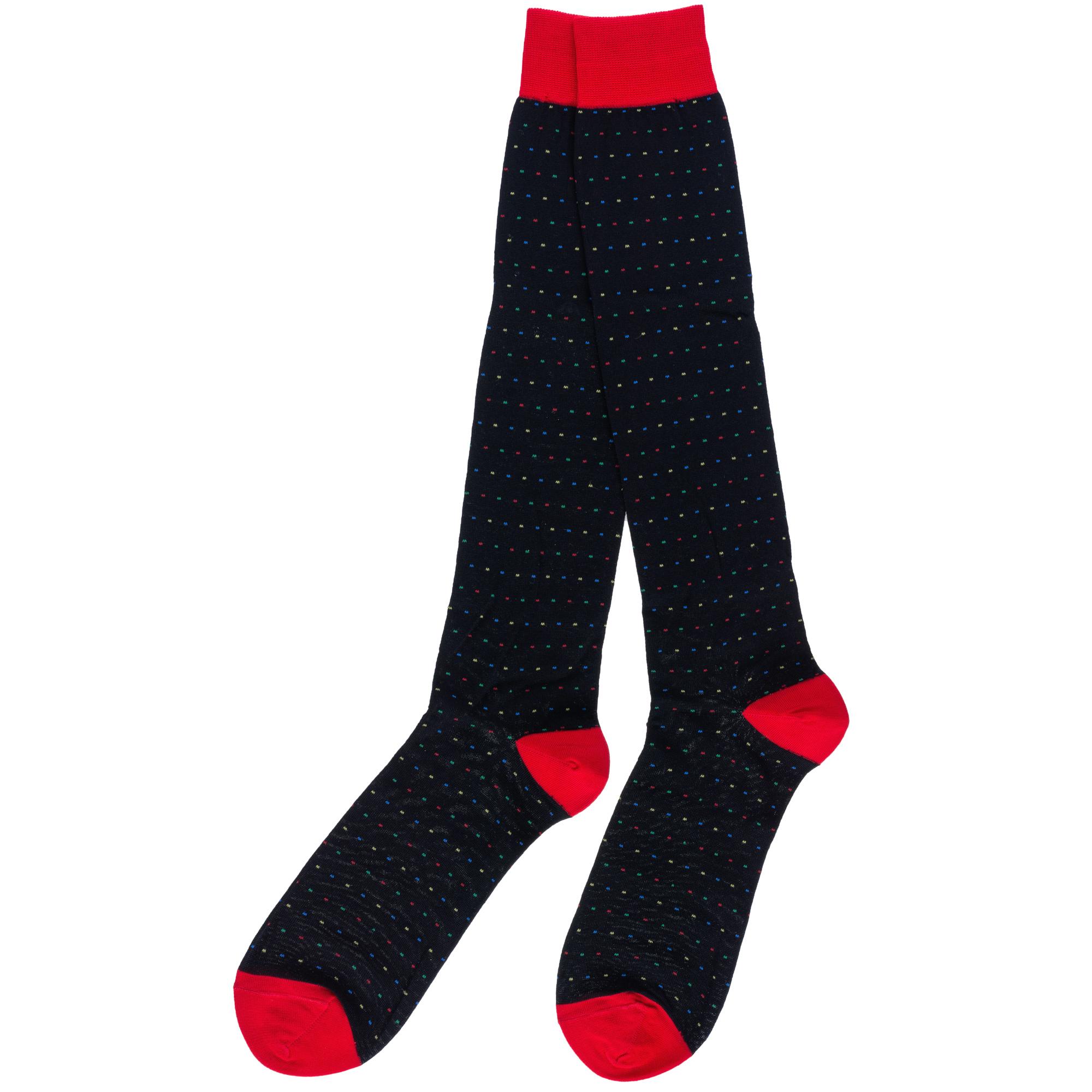 Летние или круглогодичные мужские гольфы, цвет черный, классические, шов плоский, принт (рисунок): горох / точка, с узором, состав: 80% мерсеризованный хлопок, 20% полиамид, арт. 19SC3. Производитель «ИП Супрун С.А., РФ, г. Москва» под брендом «Pingons (sergio di calze)».