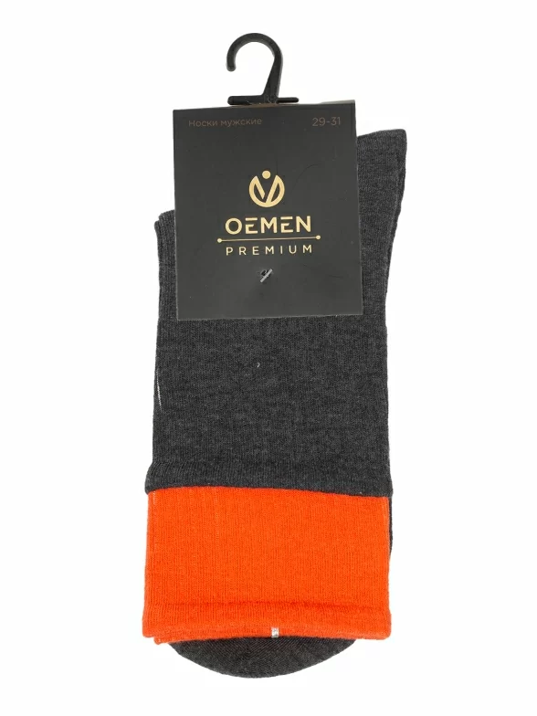 Круглогодичные средней длины мужские носки, цвет серый, спортивные, шов обычный (не бесшовные), принт (рисунок): в рубчик, однотонный, состав: 97% хлопок, 2% полиамид, 1% лайкра, арт. PM351. Производитель «Oemen» Китай под брендом «Oemen».