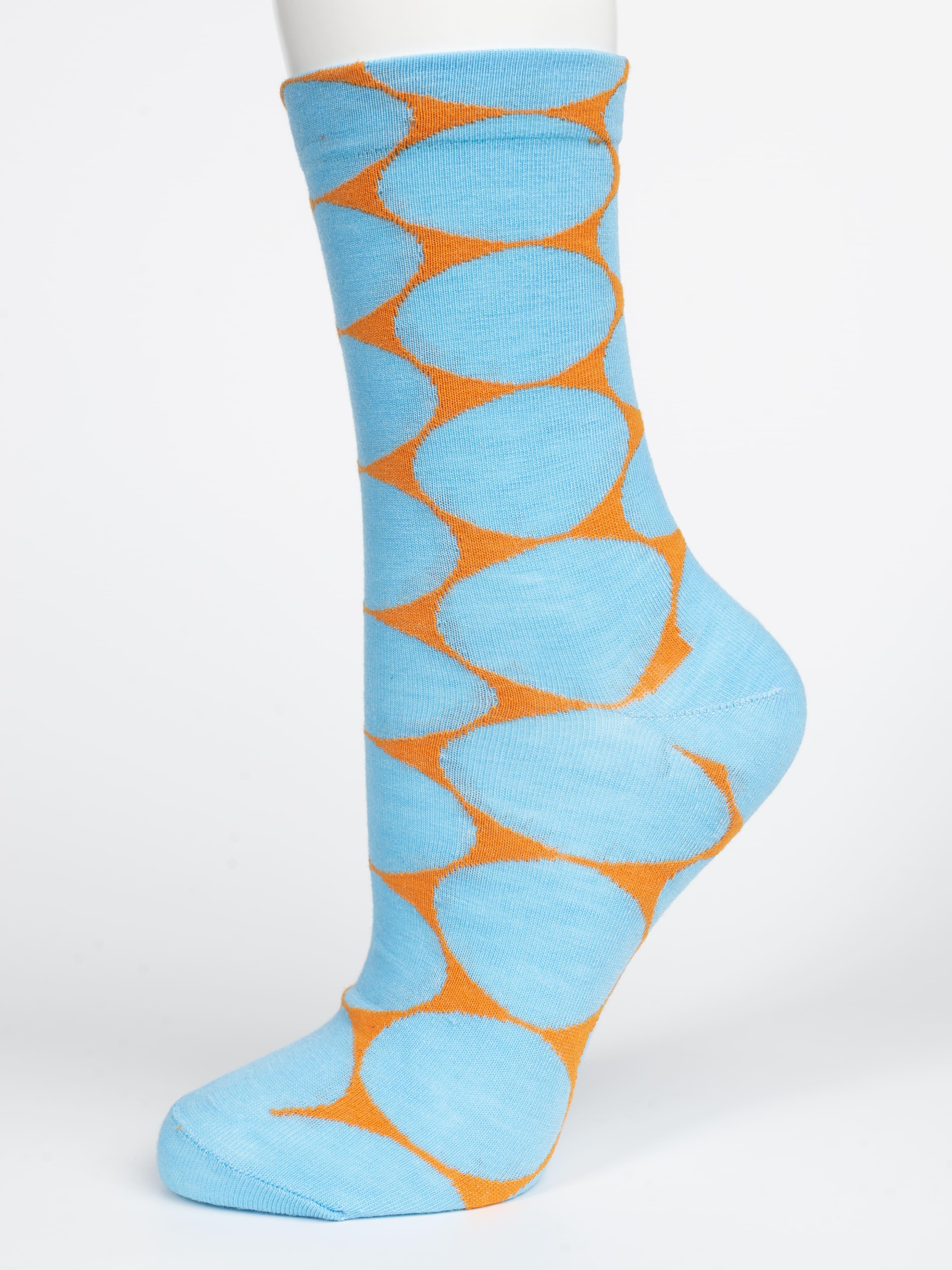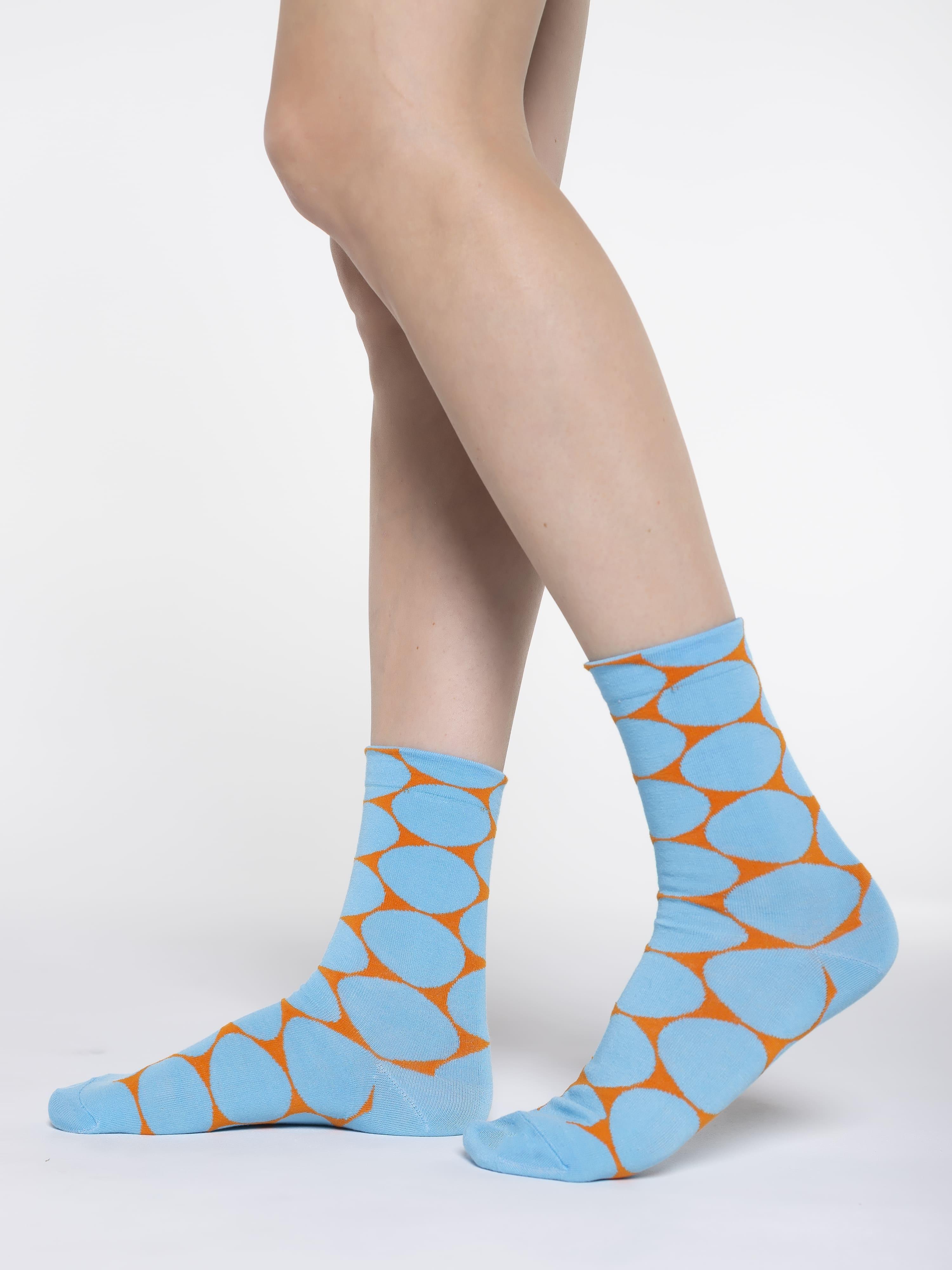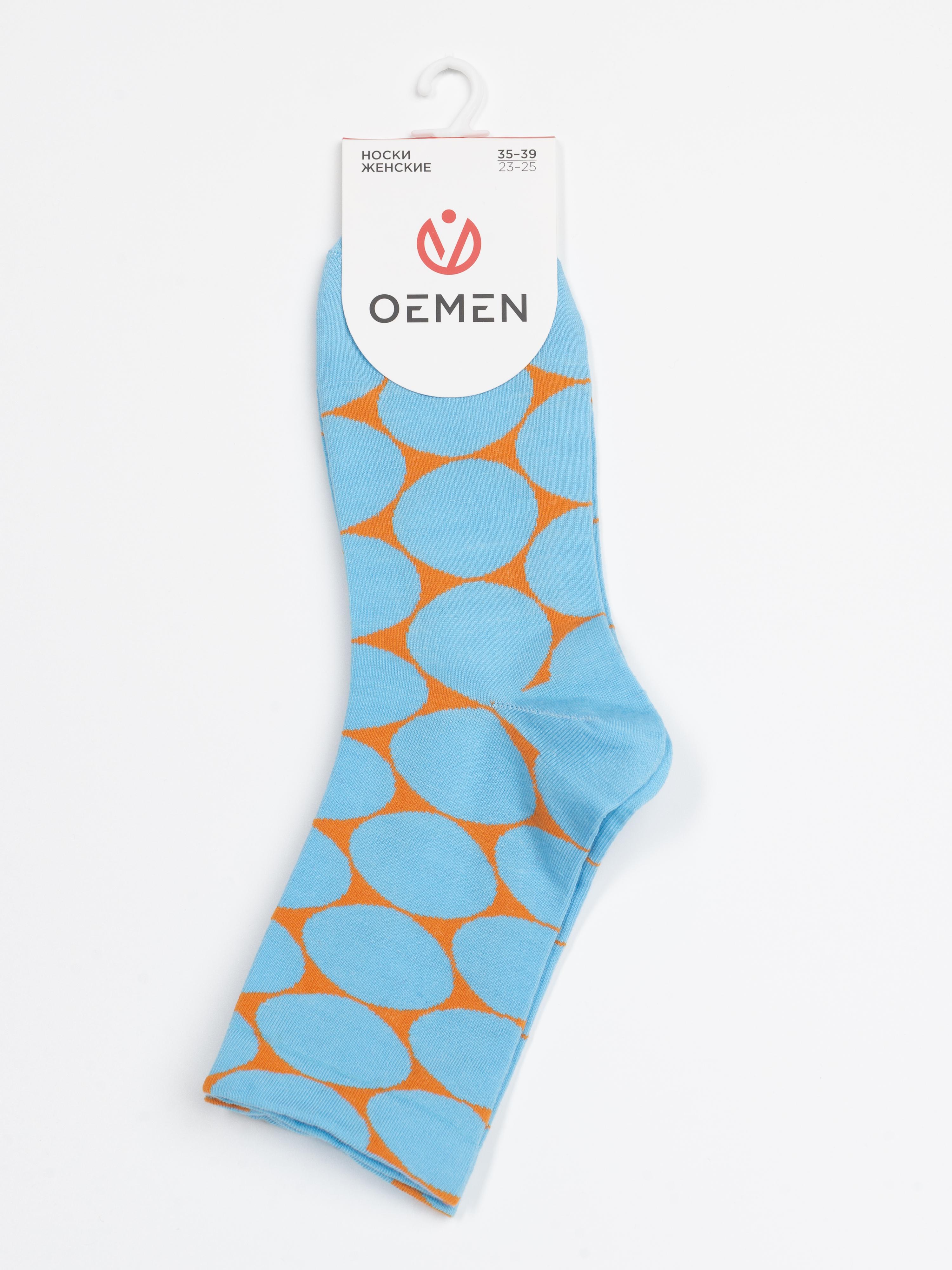Круглогодичные средней длины женские носки, цвет голубой, повседневные, шов обычный (не бесшовные), принт (рисунок): горох / точка, состав: 80% хлопок, 17% полиамид, 3% лайкра, арт. PW699-4. Производитель «Oemen» Китай под брендом «Oemen».