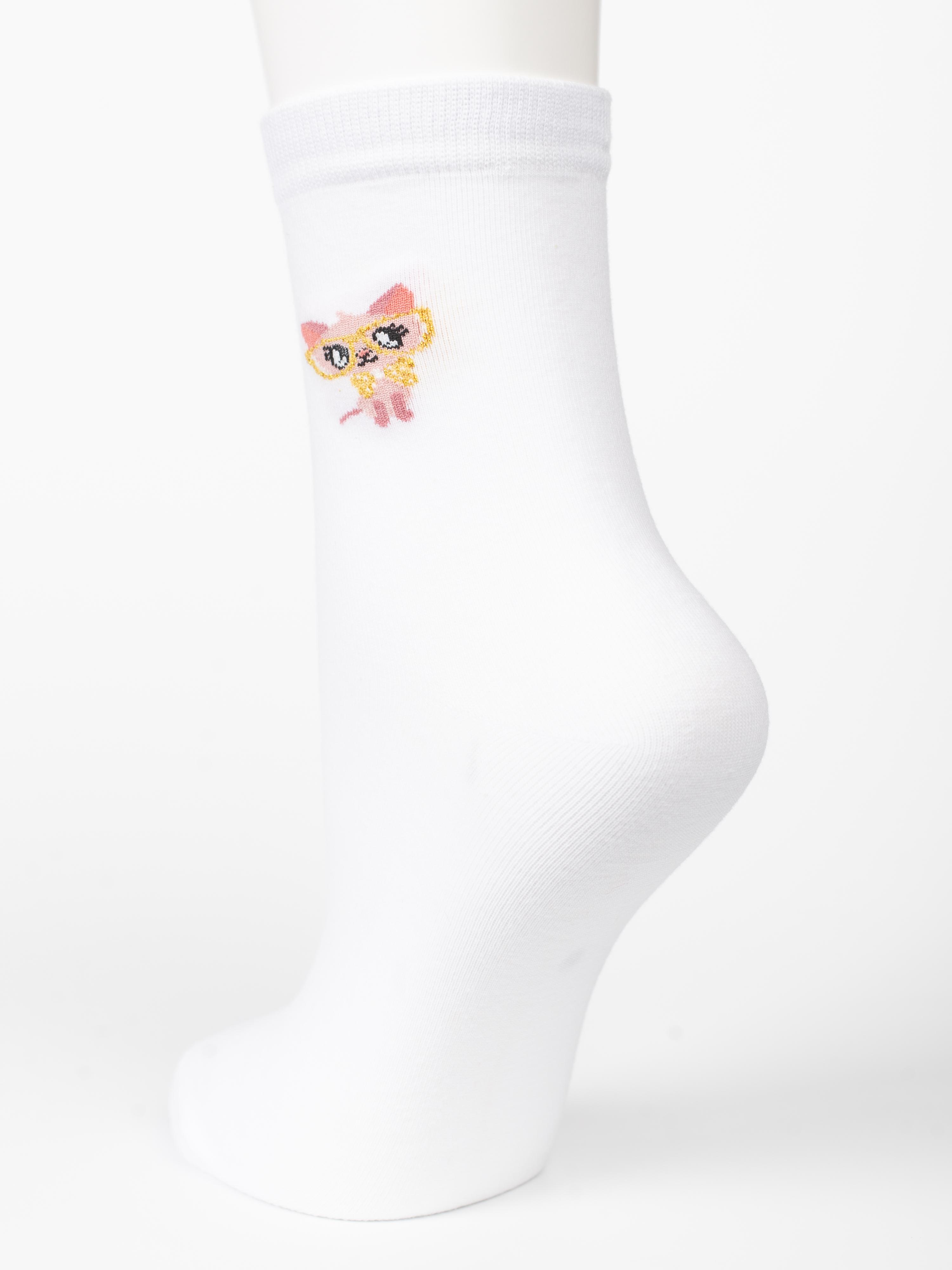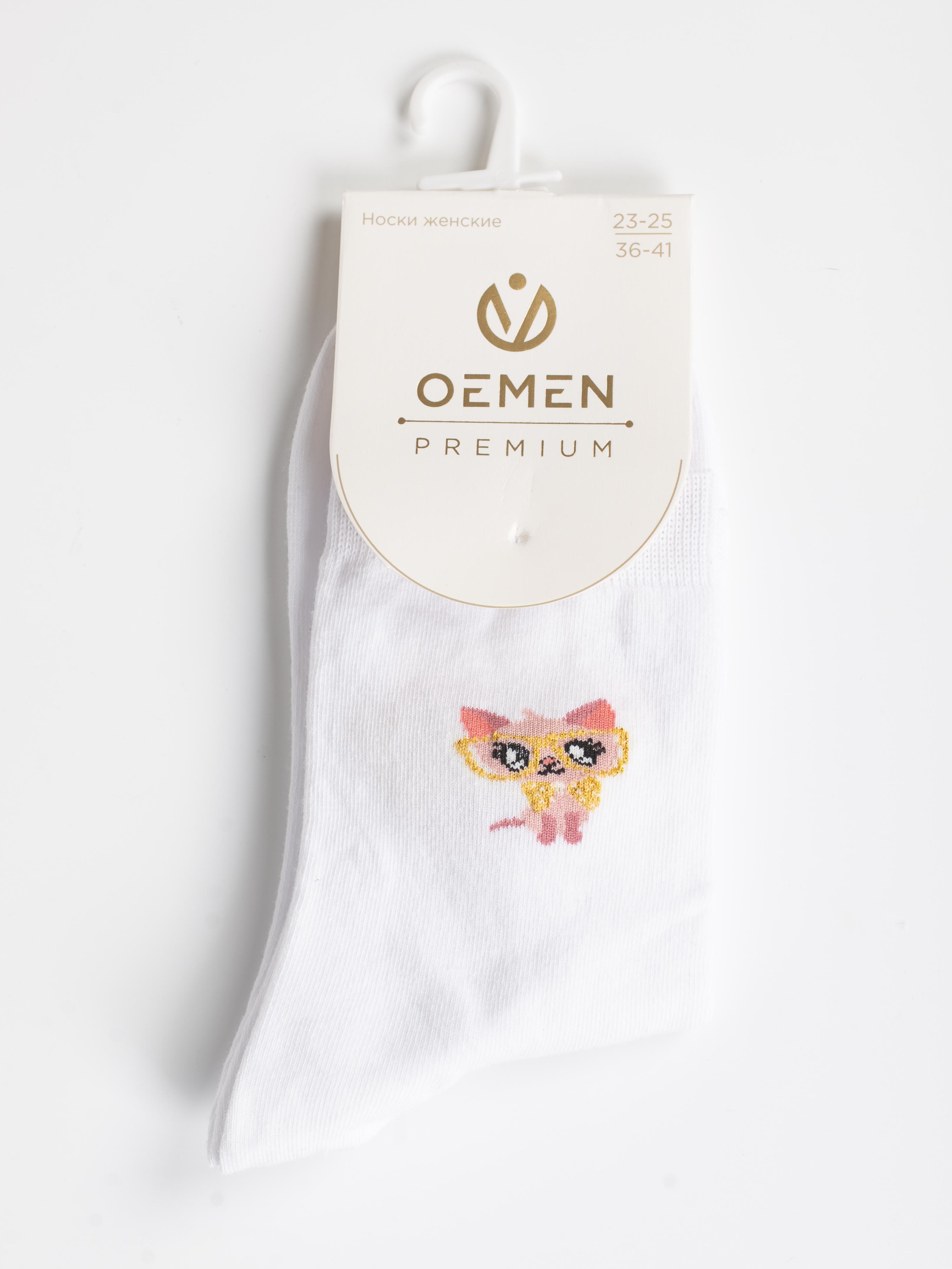 Круглогодичные укороченные женские носки, цвет белый, повседневные, шов обычный (не бесшовные), принт (рисунок): животные, состав: 97% хлопок, 2% полиамид, 1% лайкра, арт. UC01. Производитель «Oemen» Китай под брендом «Oemen».