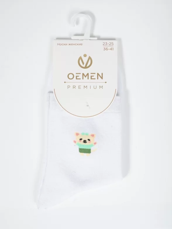 Круглогодичные укороченные женские носки, цвет белый, повседневные, шов обычный (не бесшовные), принт (рисунок): животные, состав: 97% хлопок, 2% полиамид, 1% лайкра, арт. UC05. Производитель «Oemen» Китай под брендом «Oemen».