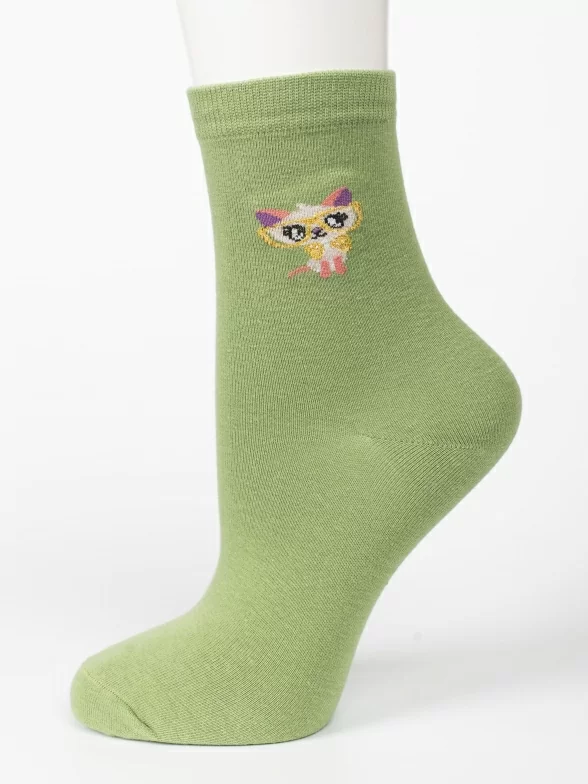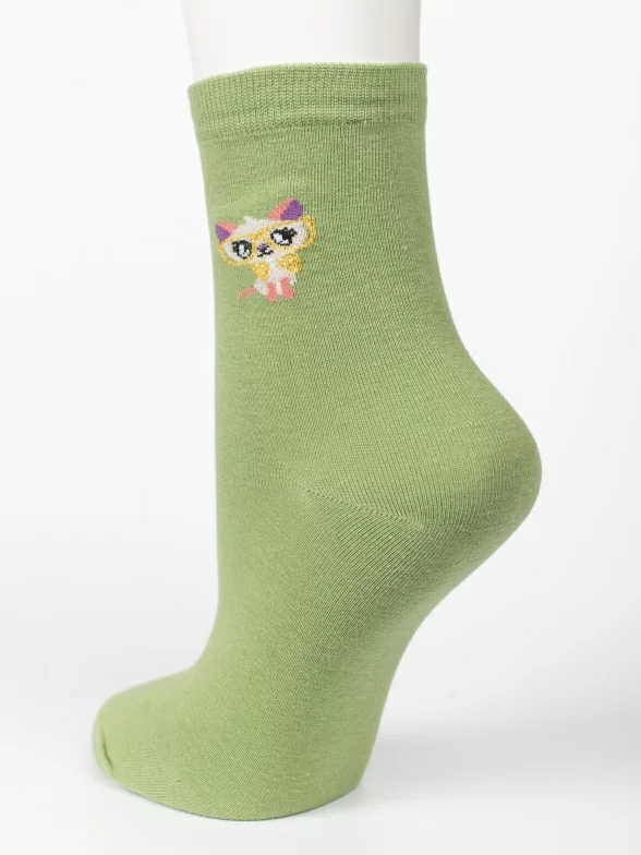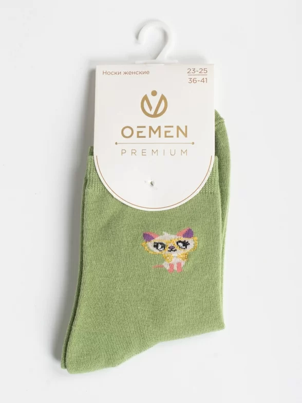 Круглогодичные укороченные женские носки, цвет зеленый, повседневные, шов обычный (не бесшовные), принт (рисунок): животные, состав: 97% хлопок, 2% полиамид, 1% лайкра, арт. UC01. Производитель «Oemen» Китай под брендом «Oemen».