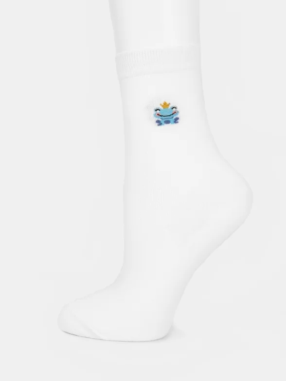 Круглогодичные укороченные женские носки, цвет белый, повседневные, шов обычный (не бесшовные), принт (рисунок): животные, состав: 97% хлопок, 2% полиамид, 1% лайкра, арт. UC03. Производитель «Oemen» Китай под брендом «Oemen».