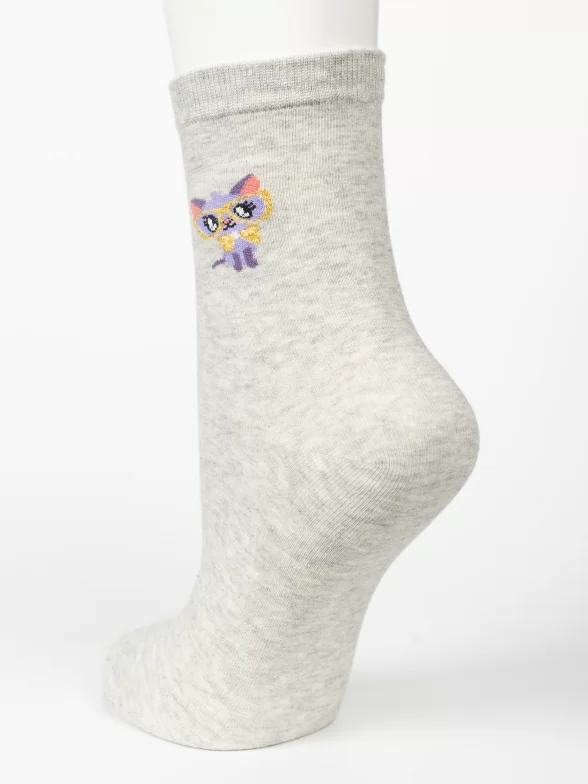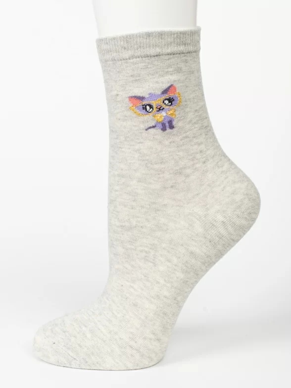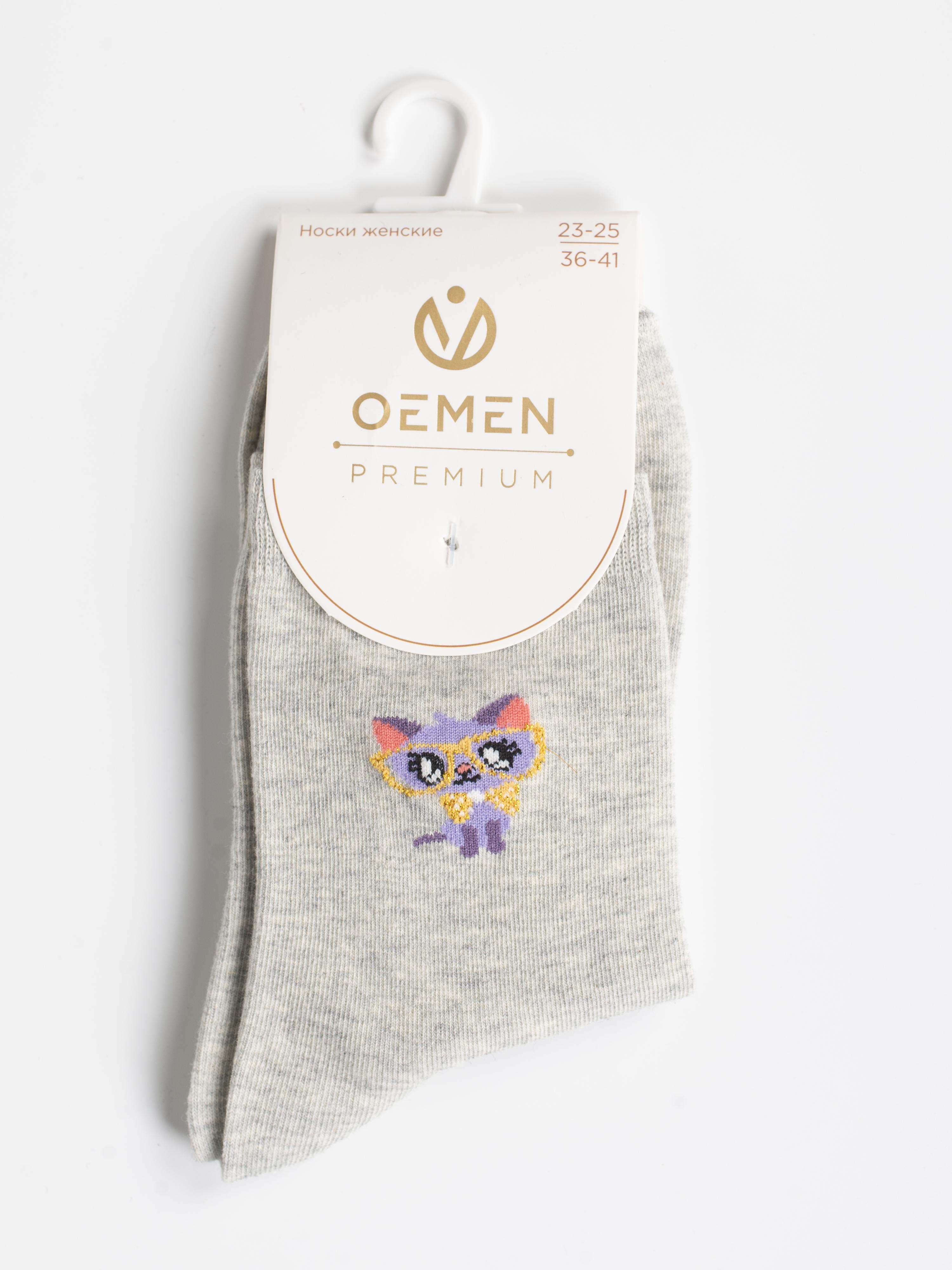 Круглогодичные укороченные женские носки, цвет серый, повседневные, шов обычный (не бесшовные), принт (рисунок): животные, состав: 97% хлопок, 2% полиамид, 1% лайкра, арт. UC01. Производитель «Oemen» Китай под брендом «Oemen».