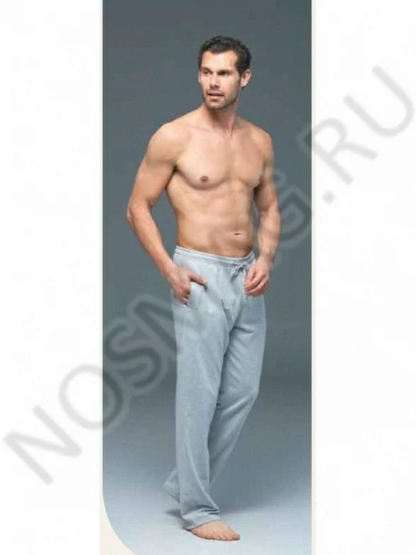 Удобный мужской комплект домашней одежды. Он состоит из тонких свободных брюк, а также толстовки в спортивном стиле с характерными контрастными вставками и акцентирующими полосками. Толстовка имеет V- образный вырез горловины.