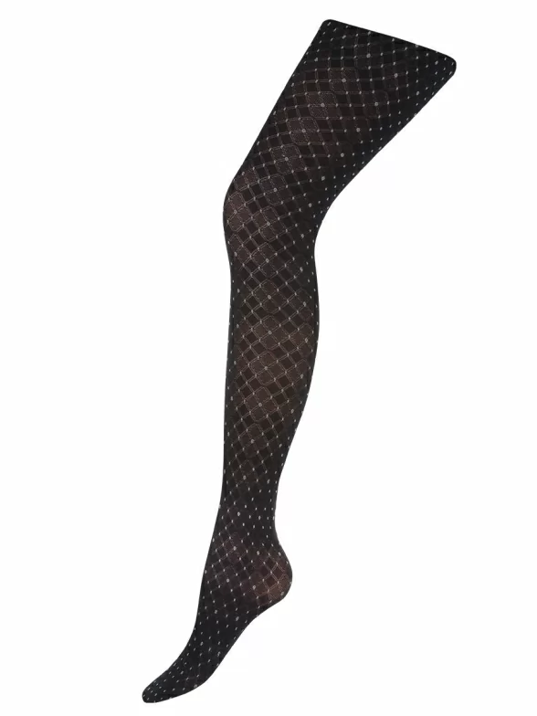 Модные колготки с геометрическим узором и рисунком в мушку. Прекрасно сочетаются с любым нарядом. Для большего удобства модель имеет широкий эластичный пояс, плоские швы и х/б ластовица.