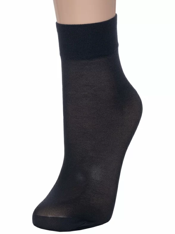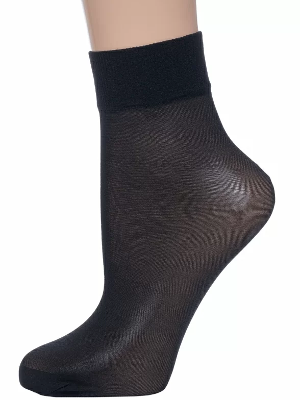 Укороченная модель плотностью 40 den без отдельно вывязанной пятки, с широким и уплотненным двойным бортом (манжетом резинки) и обычным швом на укрепленном мыске. Изготовлены в Беларуси из гладкого синтетического полотна на основе 83% полиамида с добавлением 17% эластана, благодаря чему изделие износостойкое и хорошо тянется.