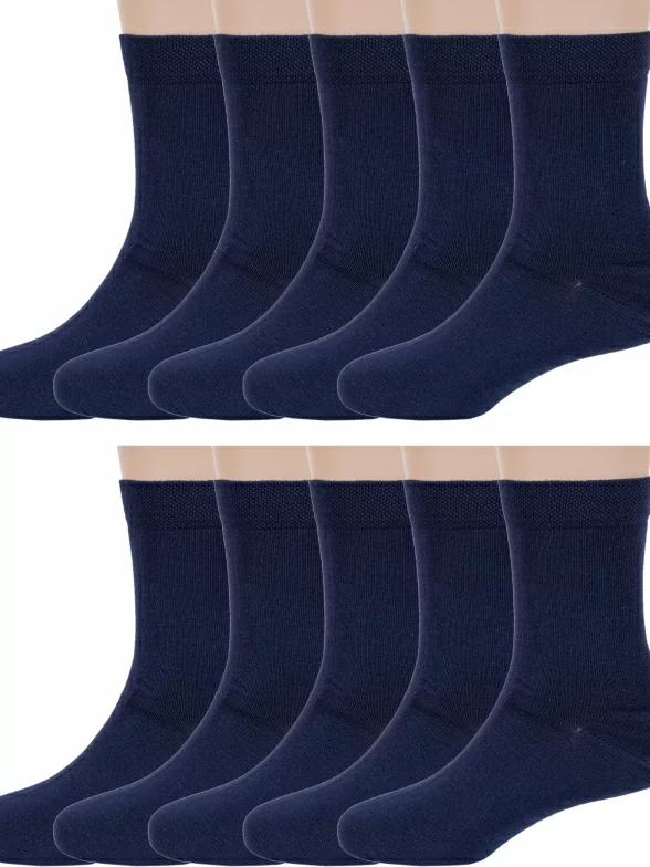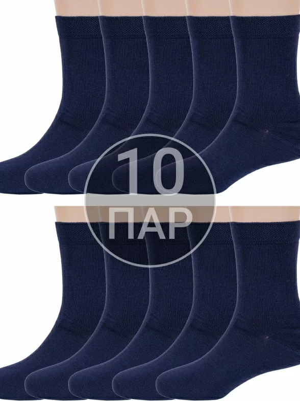 Комплект детских носков из 10 пар, круглогодичные, средней длины, цвет темно-синие, классические, шов обычный (не бесшовные), принт (рисунок): однотонный, без рисунков/узоров, состав: 88% бамбук, 10% полиамид, 2% эластан, арт. 10-D-1425. Производитель «ХОХ» Россия под брендом «Хох».