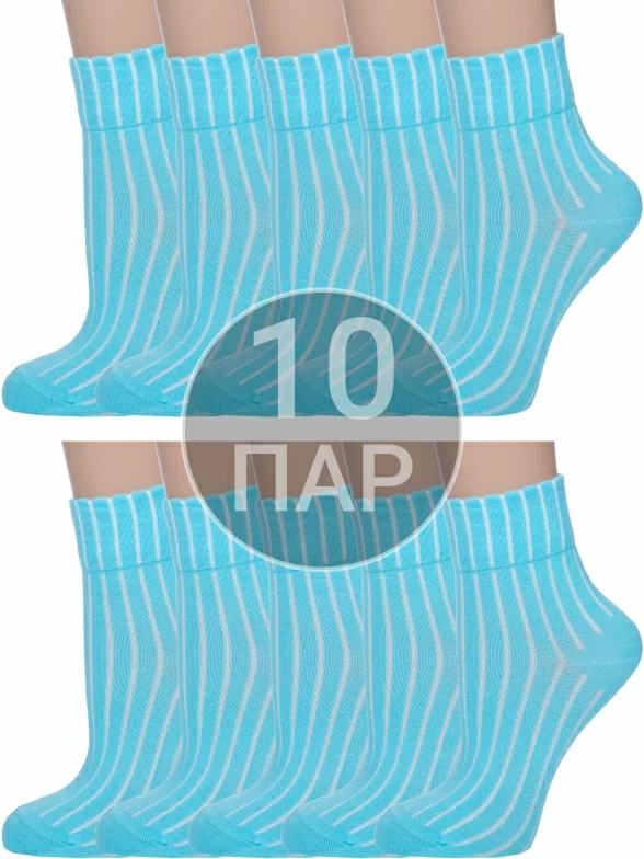 Комплект детских носков из 10 пар, круглогодичные, укороченные, цвет бирюзовый, классические, шов обычный (не бесшовные), принт (рисунок): полоски, в рубчик, с узором, состав: 65% хлопок, 32% полиамид, 3% эластан, арт. 10-ВК41000 001. Производитель «ООО «АКОС ТЭКС», Московская область, Россия» под брендом «Akos».