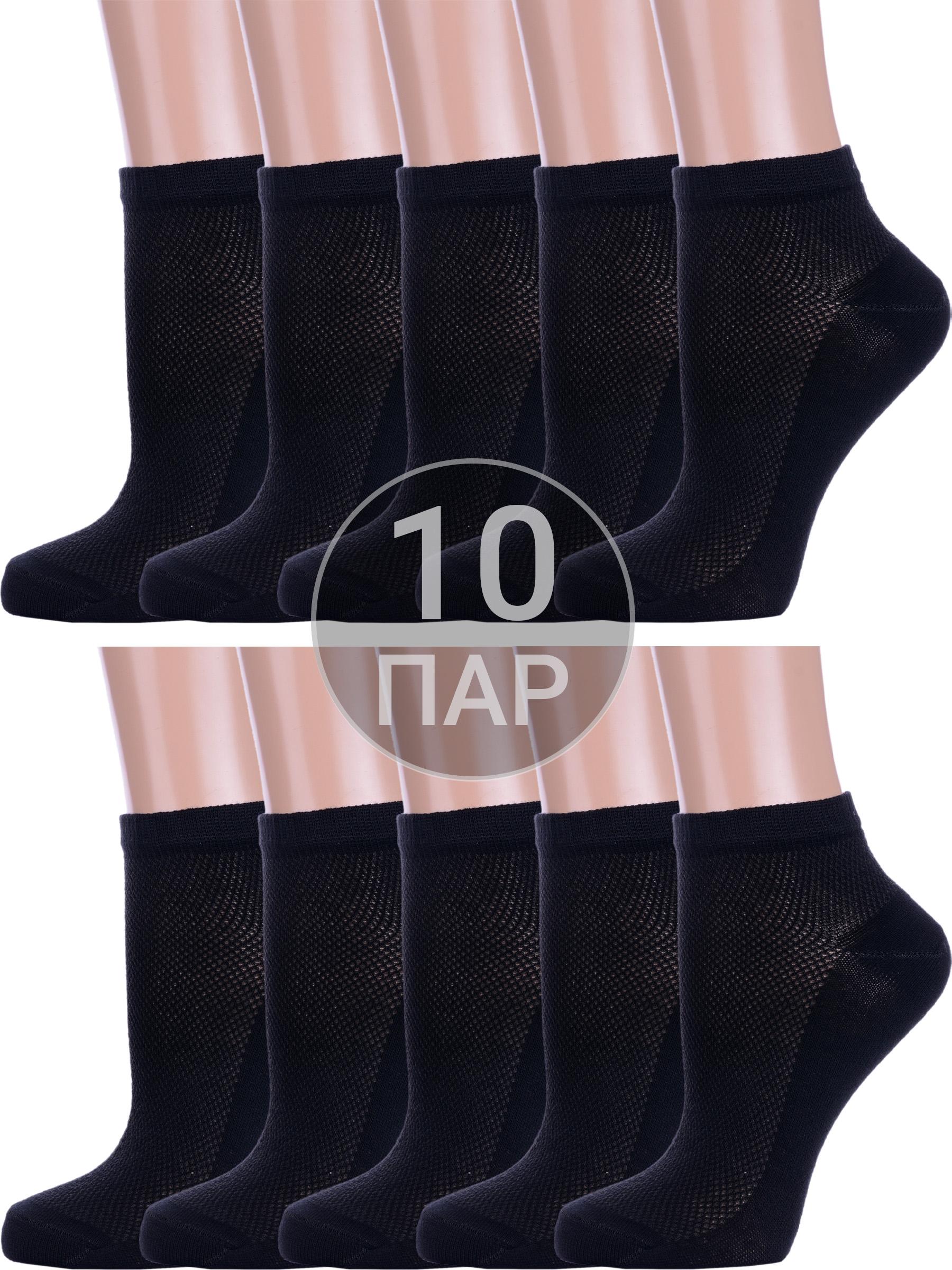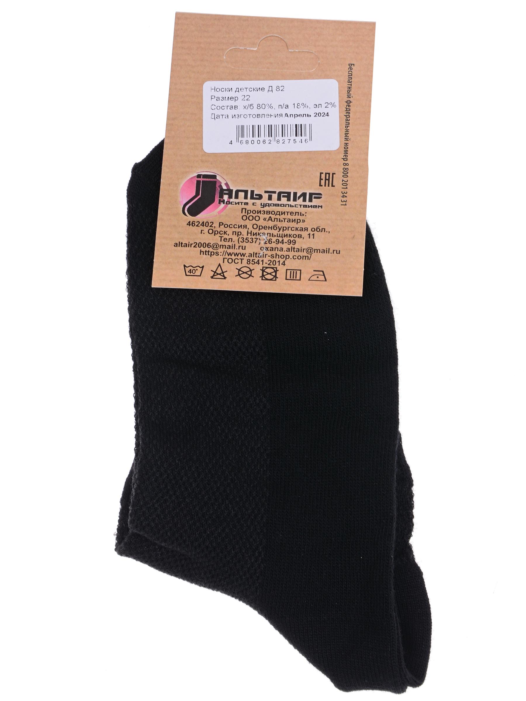 Комплект детских носков из 10 пар, летние, укороченные, цвет черный, в сеточку, классические, возможно бесшовные, принт (рисунок): однотонный, без рисунков/узоров, состав: 80% хлопок, 18% полиамид, 2% эластан, арт. 10-Д82. Производитель «ООО Альтаир, г. Орск, Оренбургская обл, Россия» под брендом «Альтаир».