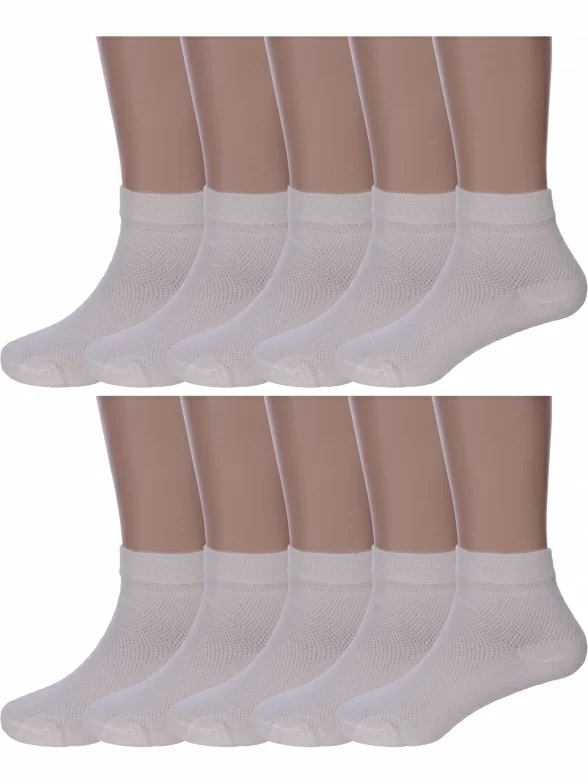 Комплект детских носков из 10 пар, летние, укороченные, цвет экрю, в сеточку, шов обычный (не бесшовные), состав: 80% хлопок, 18% полиамид, 2% эластан, арт. 10-Д82. Производитель «ООО Альтаир, г. Орск, Оренбургская обл, Россия» под брендом «Альтаир».