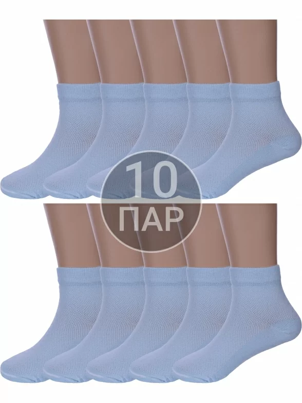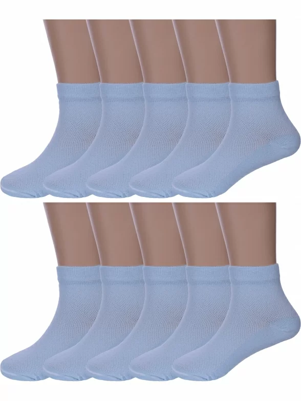 Комплект детских носков из 10 пар, летние, укороченные, цвет голубой, в сеточку, шов обычный (не бесшовные), принт (рисунок): однотонный, с узором, состав: 80% хлопок, 18% полиамид, 2% эластан, арт. 10-Д82. Производитель «ООО Альтаир, г. Орск, Оренбургская обл, Россия» под брендом «Альтаир».