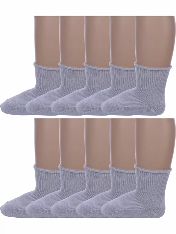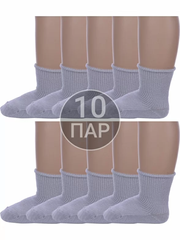 Комплект детских носков из 10 пар, круглогодичные, укороченные, цвет серый, медицинские, классические, шов обычный (не бесшовные), принт (рисунок): в рубчик, с узором, однотонный, состав: 90% хлопок, 8% полиамид, 2% эластан, арт. 10-С63. Производитель «ООО Альтаир, г. Орск, Оренбургская обл, Россия» под брендом «Альтаир».